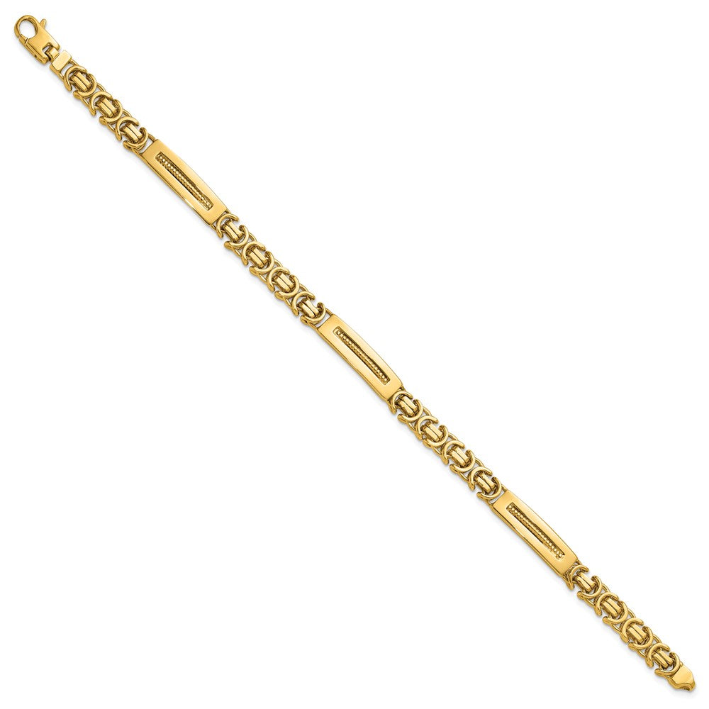 14k Polished Fancy Link and Textured Bars Mens Bracelet