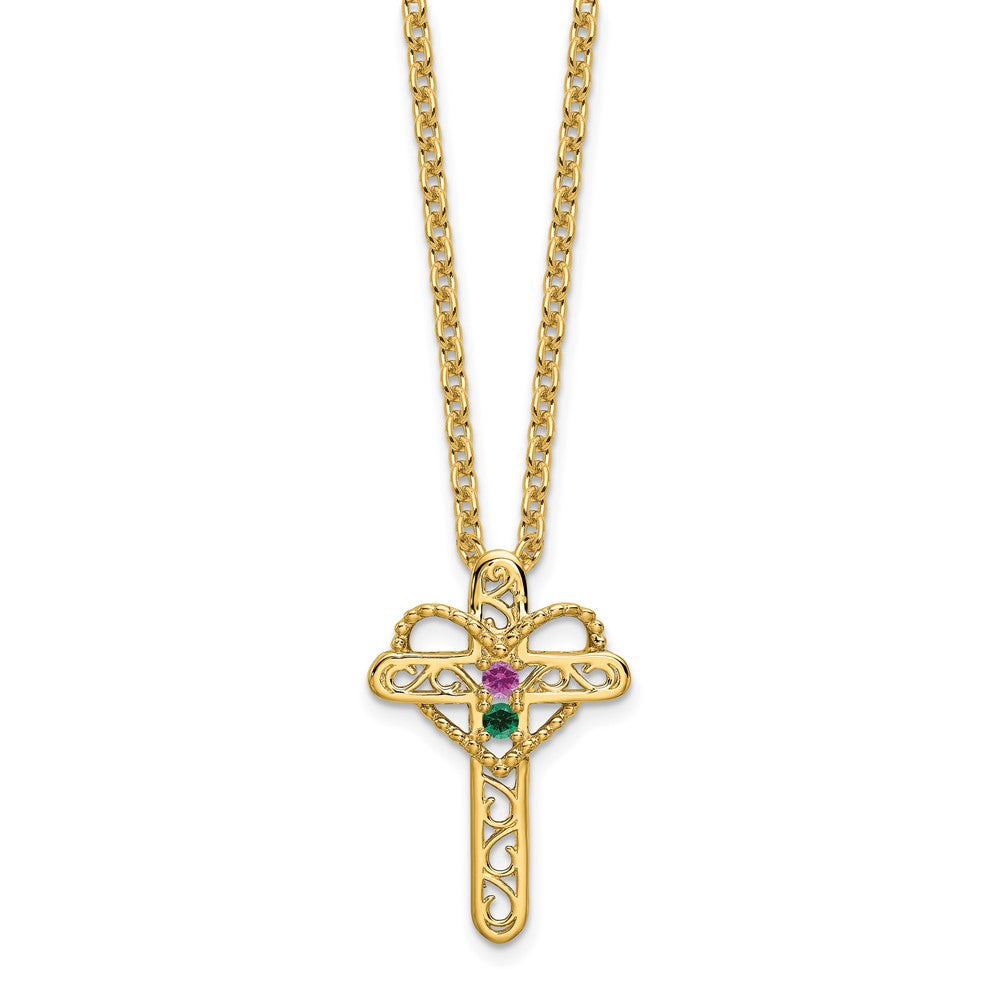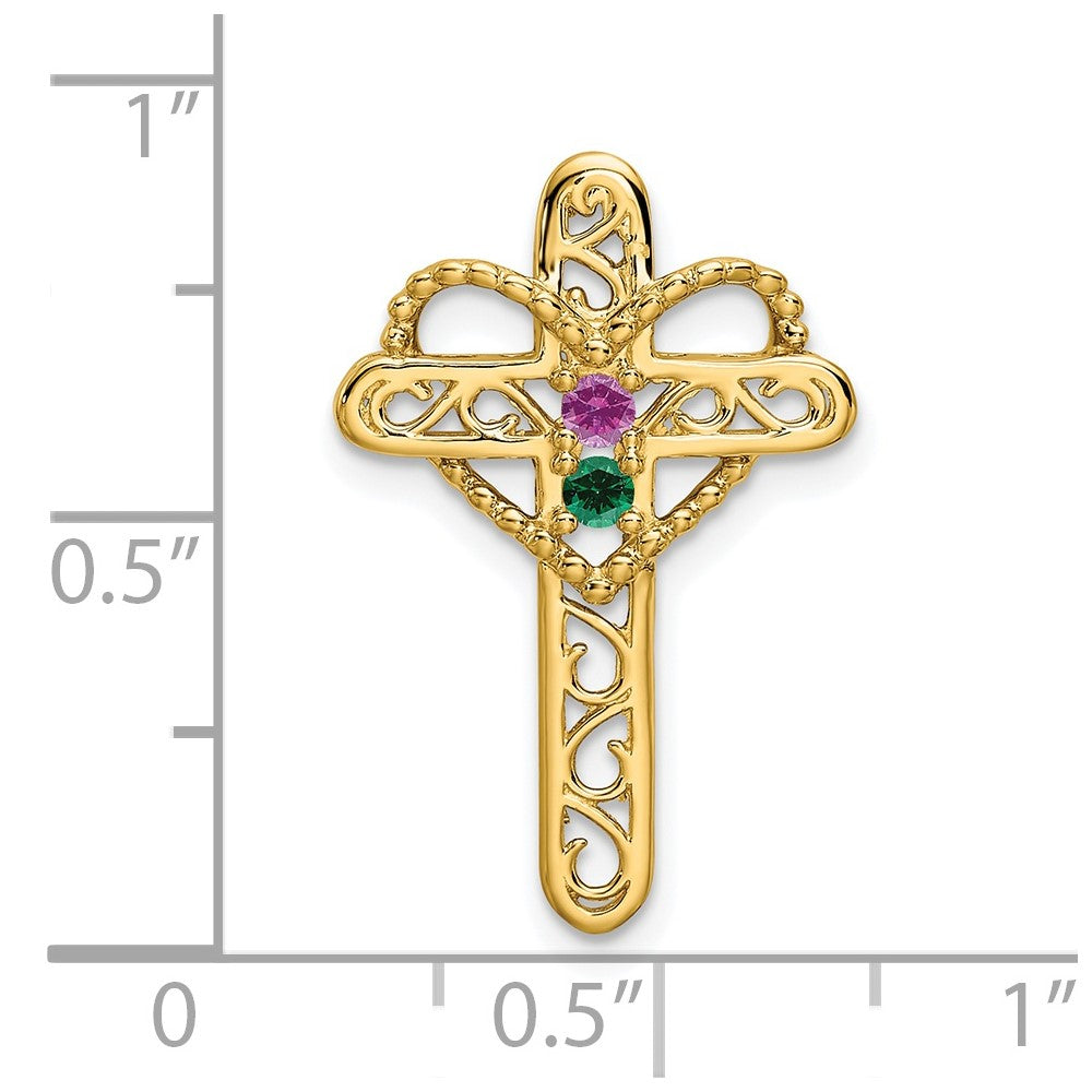 14k Polished Filigree 2-Stone Mothers Cross Pendant Mounting