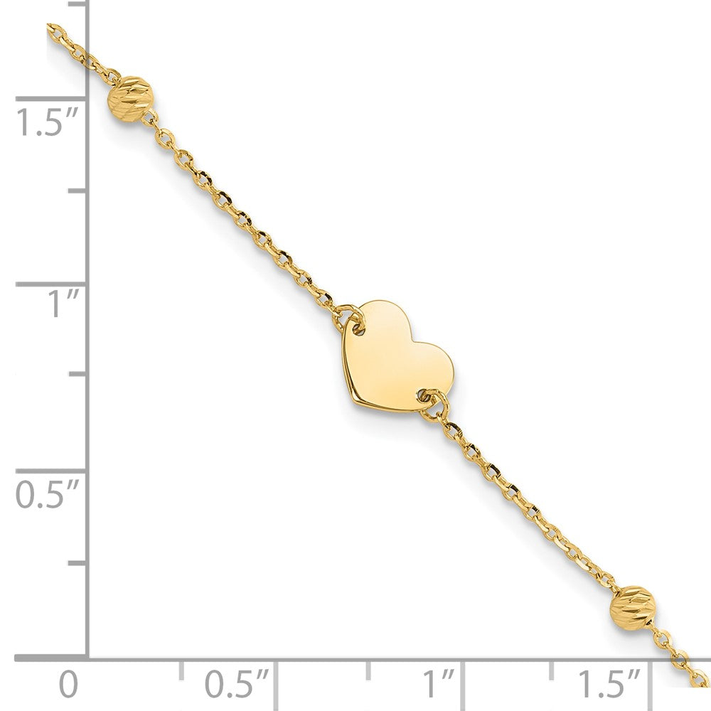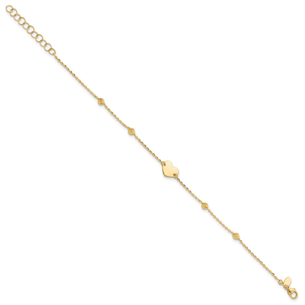 14K Polished Heart and Diamond-cut Beads 6. Bracelet Plus Extension