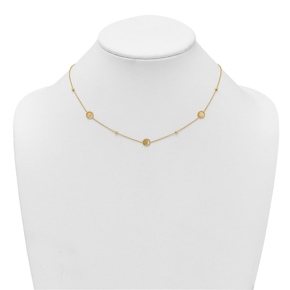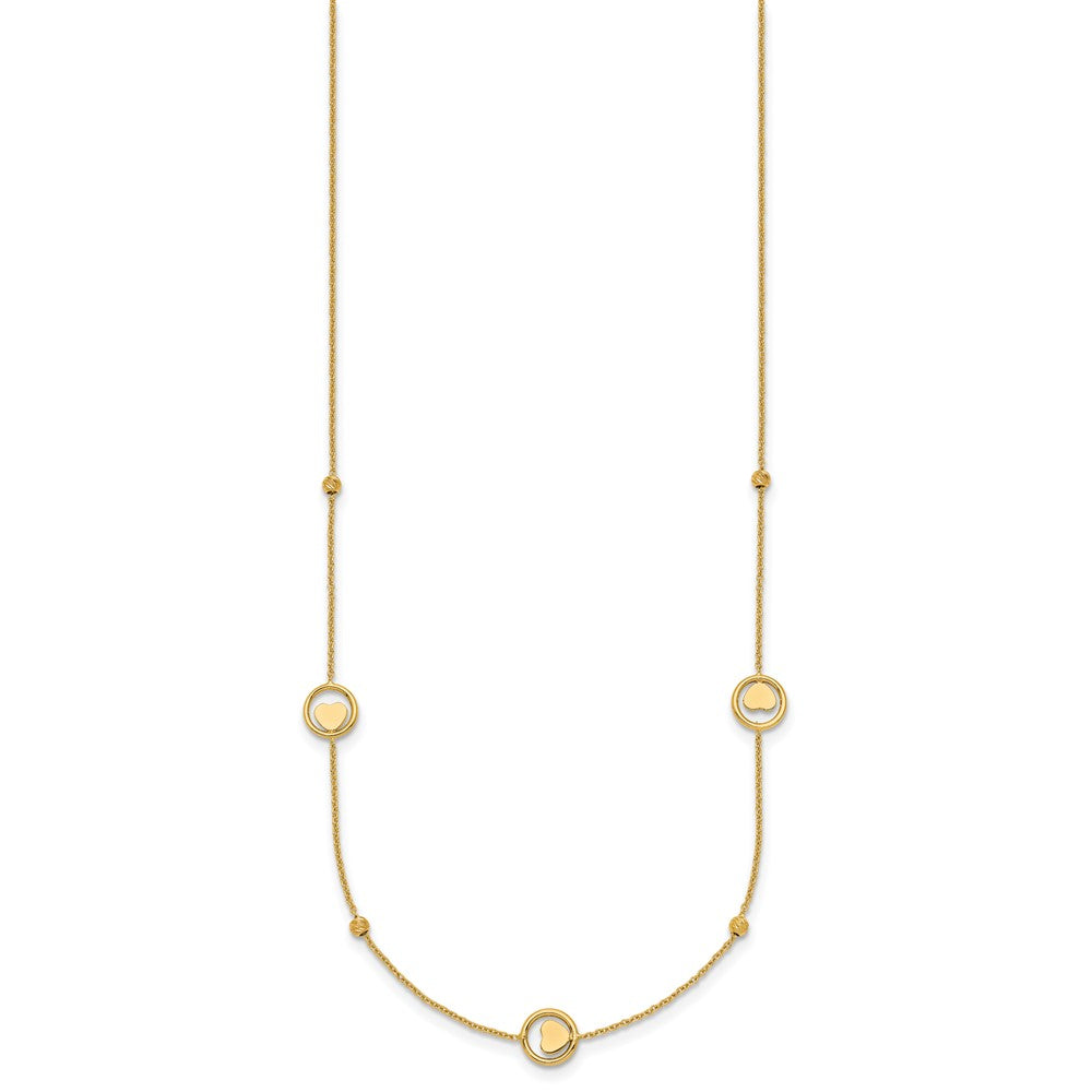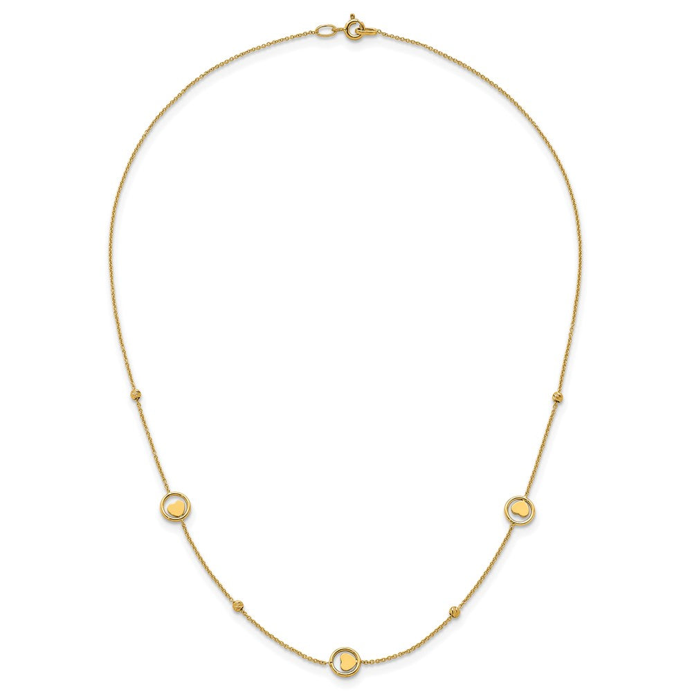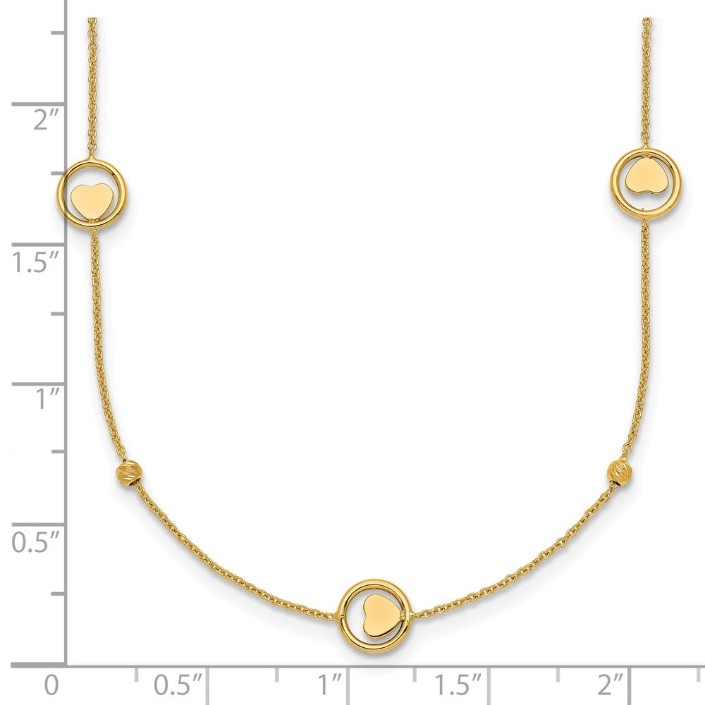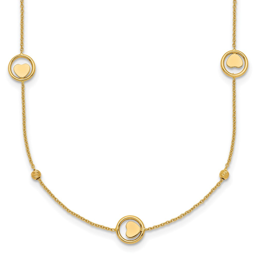 14k Polished Heart in Circle with Diamond-cut Beads 7-Station 16. Necklace