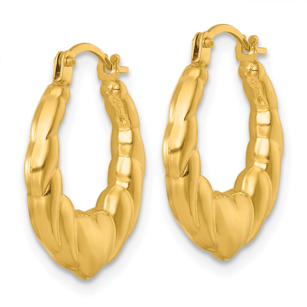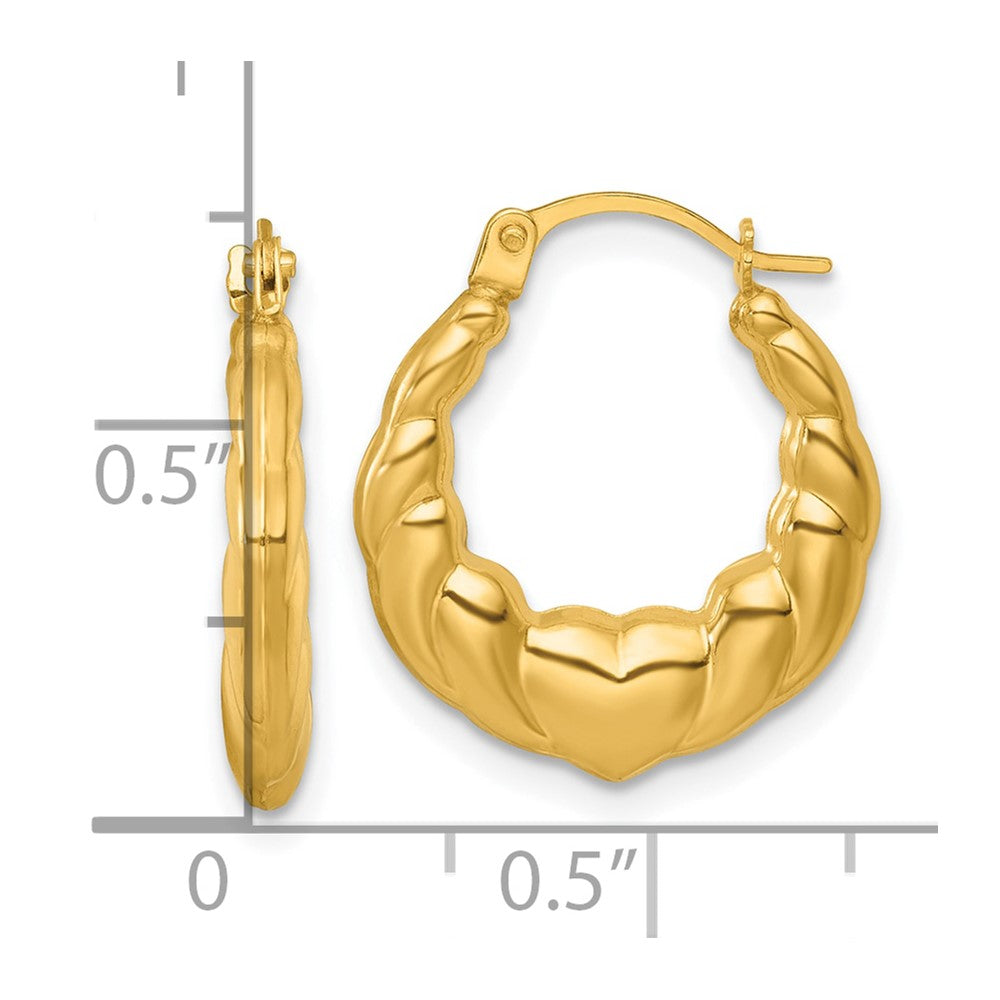 14k Polished Heart Scalloped Round Hollow Hoop Earrings