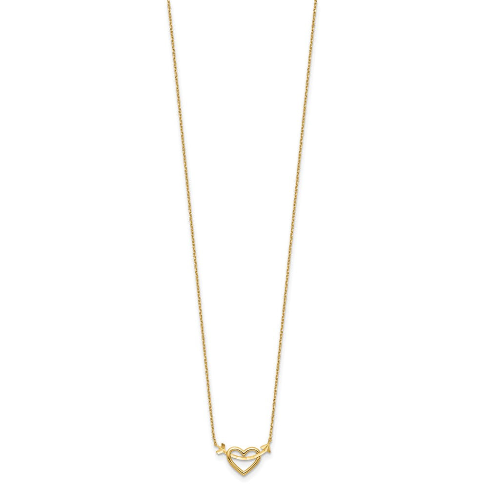 14k Polished Heart with Arrow Necklace Plus Extender