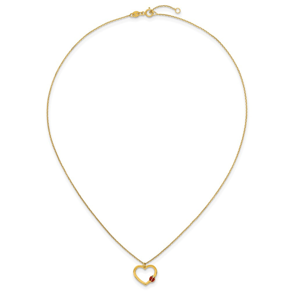 14k Polished Heart with Red and Black Enamel Ladybug 15. Childrens Necklace Plus 0. Extender