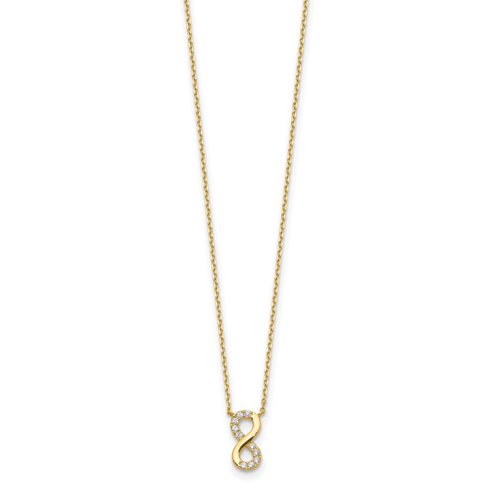14K Polished Infinity Symbol with CZ Necklace Plus Extender