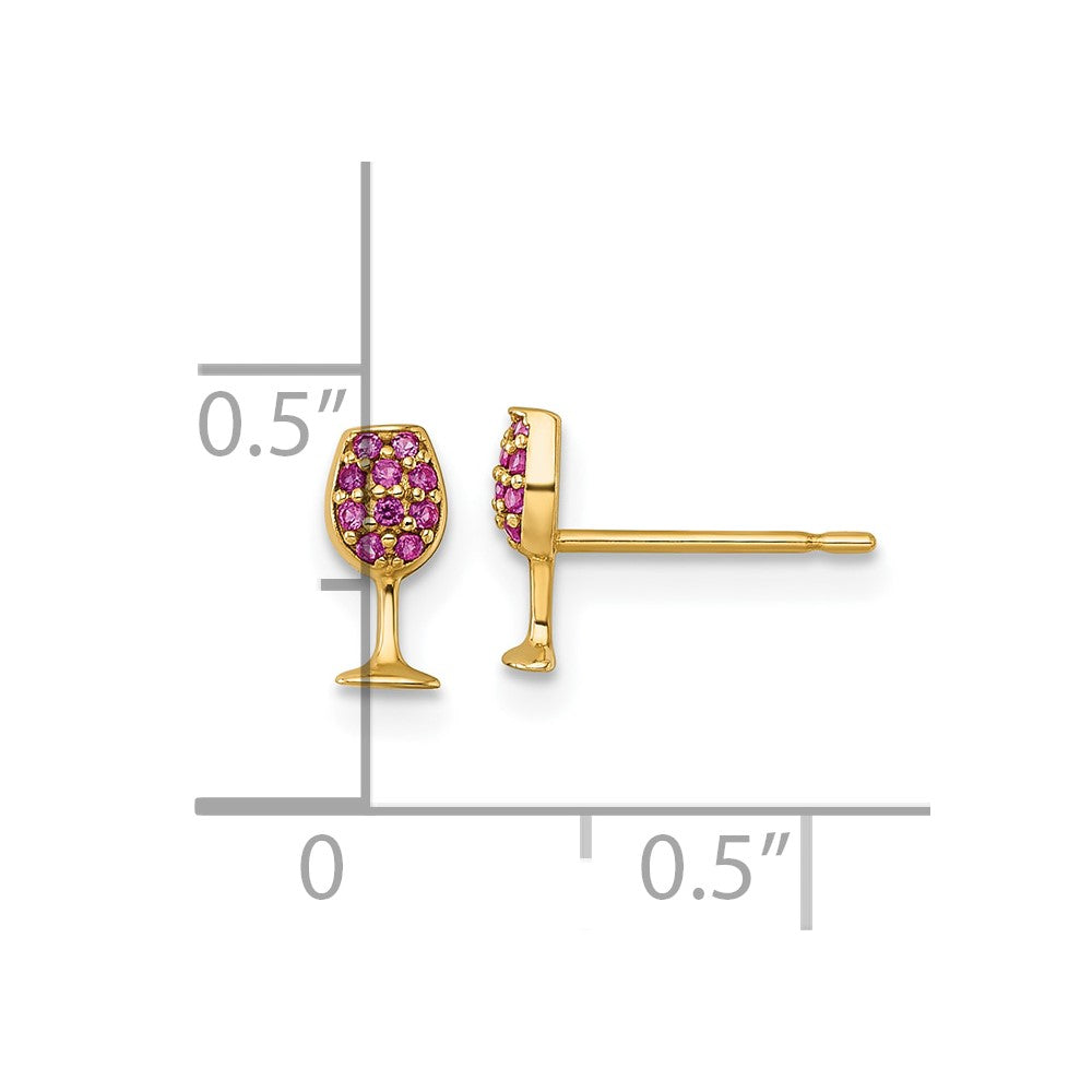 14k Polished Lab Created Ruby Wine Glass Post Earrings