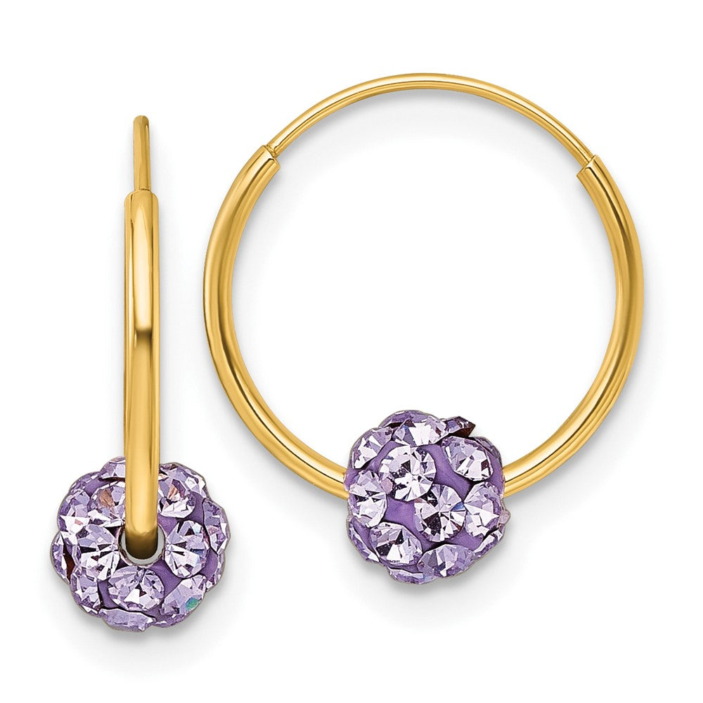 14k Polished Lavender Crystal and Resin Bead Endless Hoop Earrings