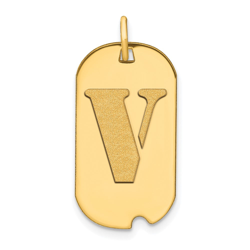 14k Polished Letter V Initial Dog Tag Pendant