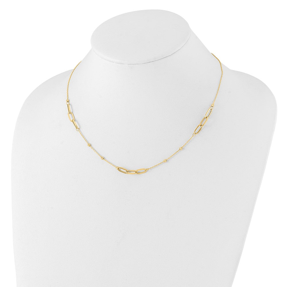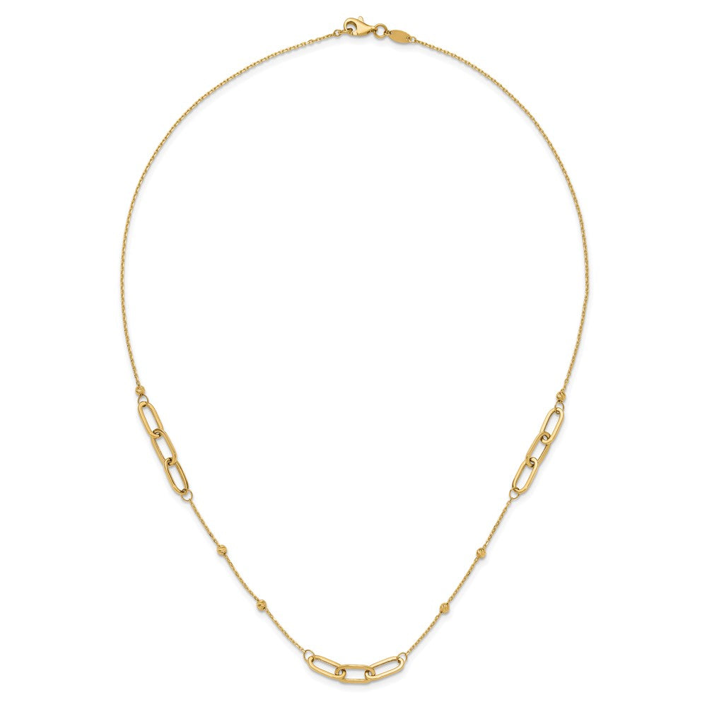 14K Polished Linked Ovals and Diamond-cut Beads Fancy 3-Station Necklace