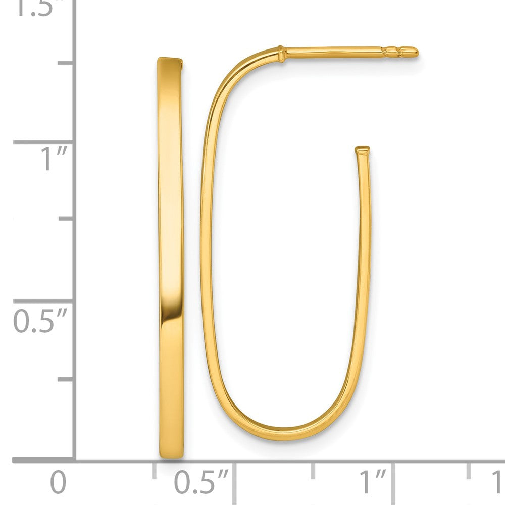 14k Polished Long Oval Tube Hoop Post Earrings