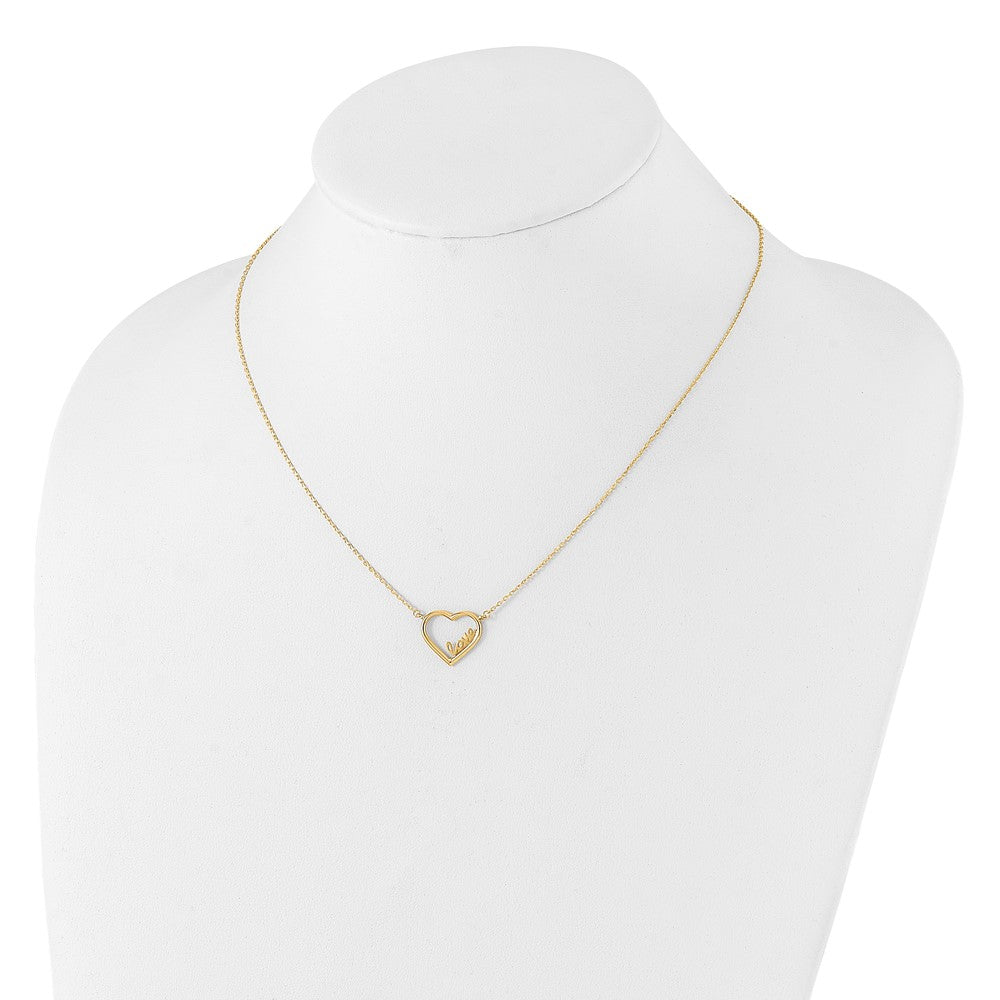 14K Polished Open Heart with LOVE Inside Necklace Plus 0. Extender