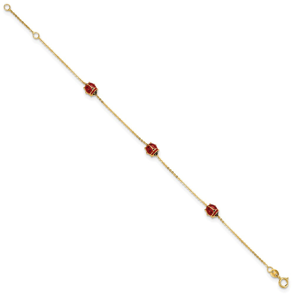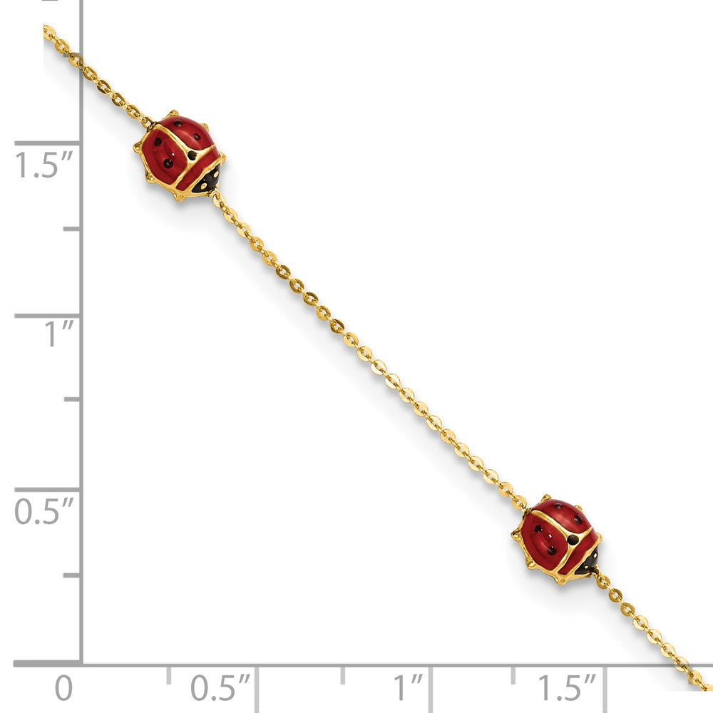 14k Polished Red and Black Enameled Ladybugs 6. Childrens Bracelet Plus 0. Extender