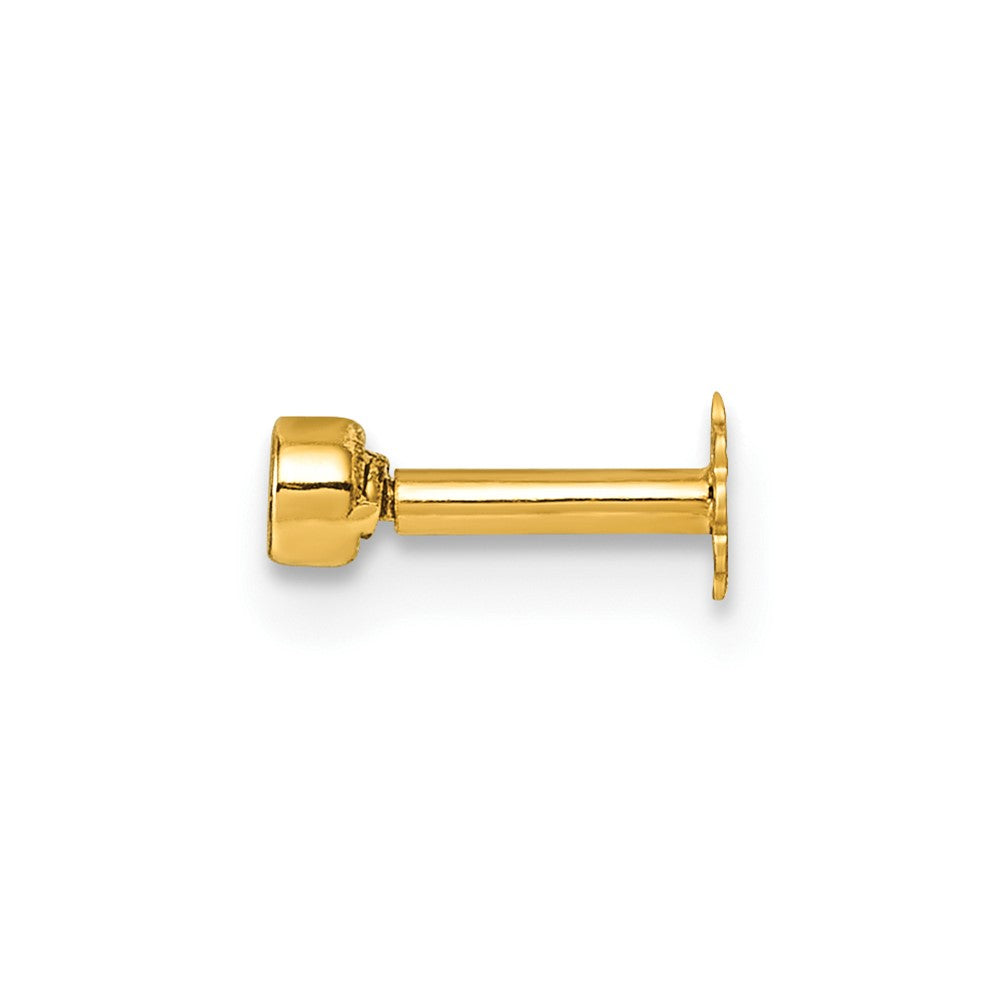 14K Polished Round Bezel CZ 16 Gauge Labret Stud