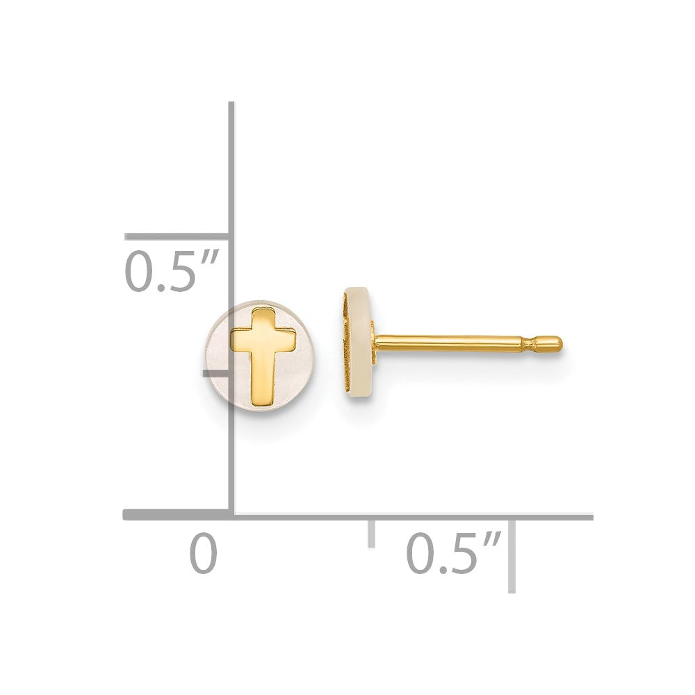 14K Polished Round Mother of Pearl with Cross Post Earrings
