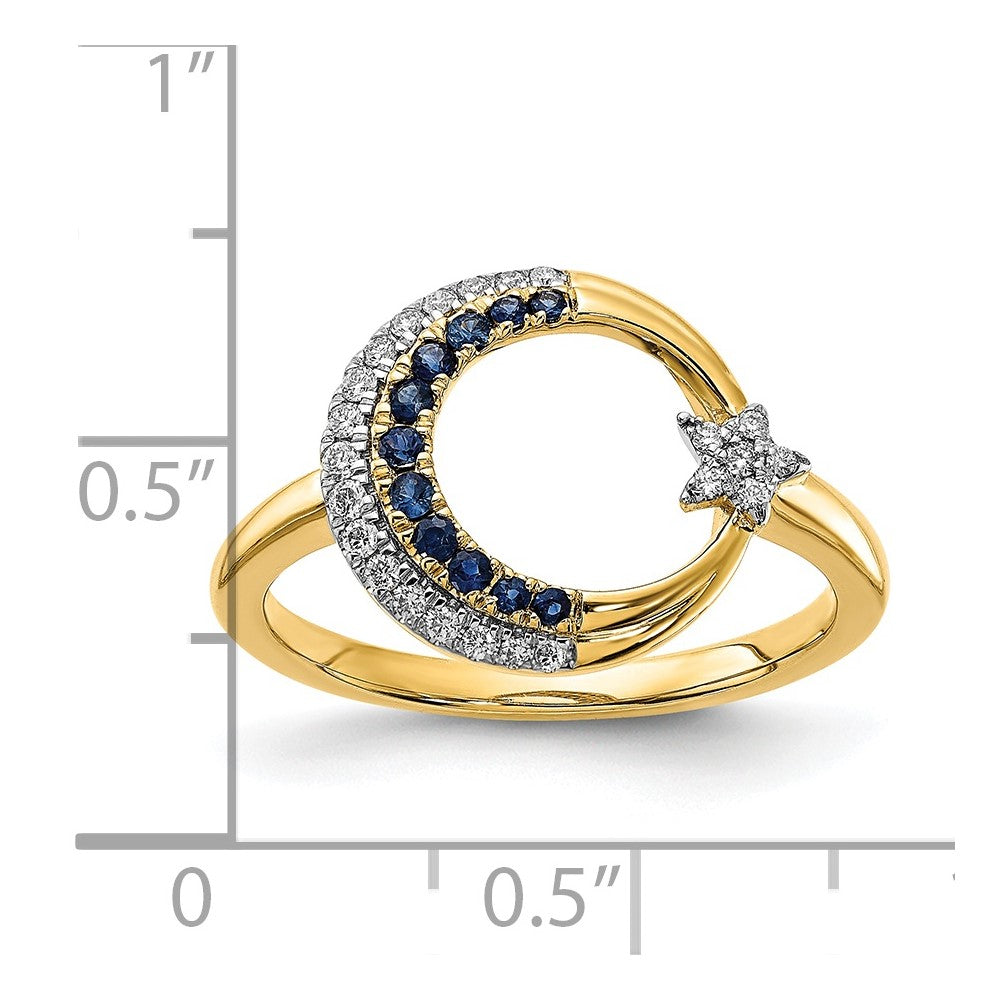 14k Polished Sapphire and Diamond Moon w/Star Ring