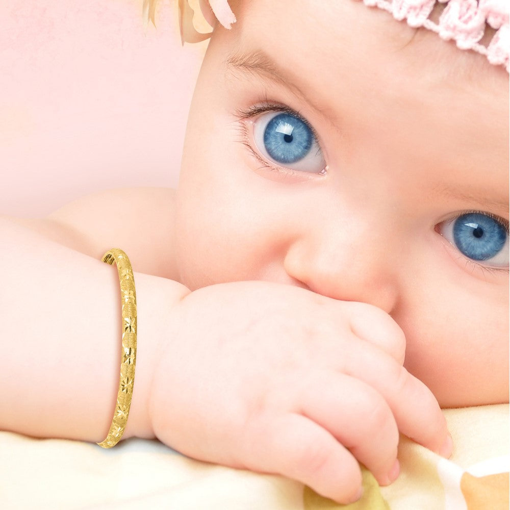 14K Polished Satin and Diamond-cut Adjustable Baby Bangle