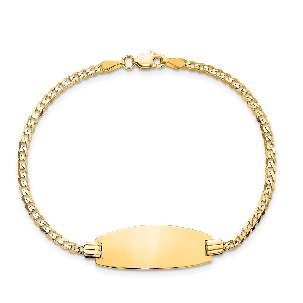 14k Polished Solid Chain/Solid Plate Curb Link Oval 24x10. Plate ID Bracelet