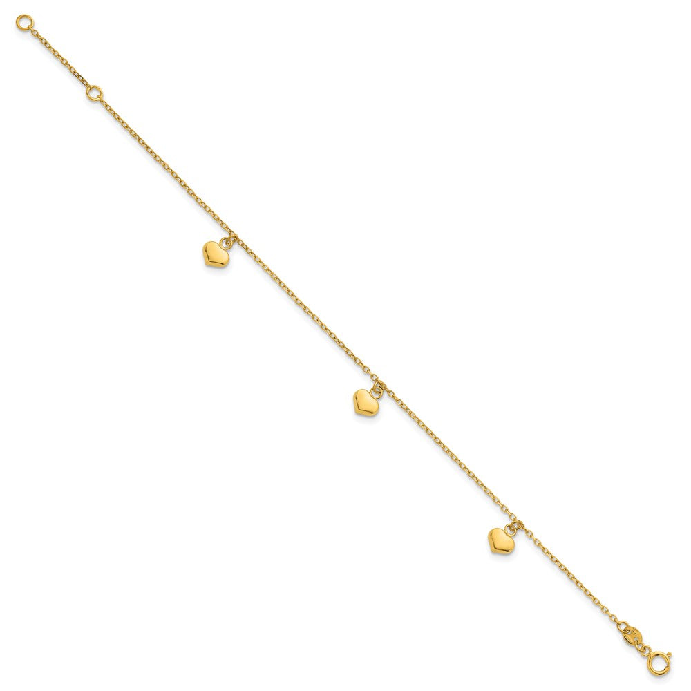 14k Polished Three Puffed Heart Dangle 6. Childrens Bracelet Plus 0. Extender