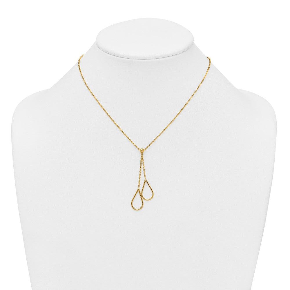 14k Polished Two Teardrops Dangle Y-Necklace Plus Extender