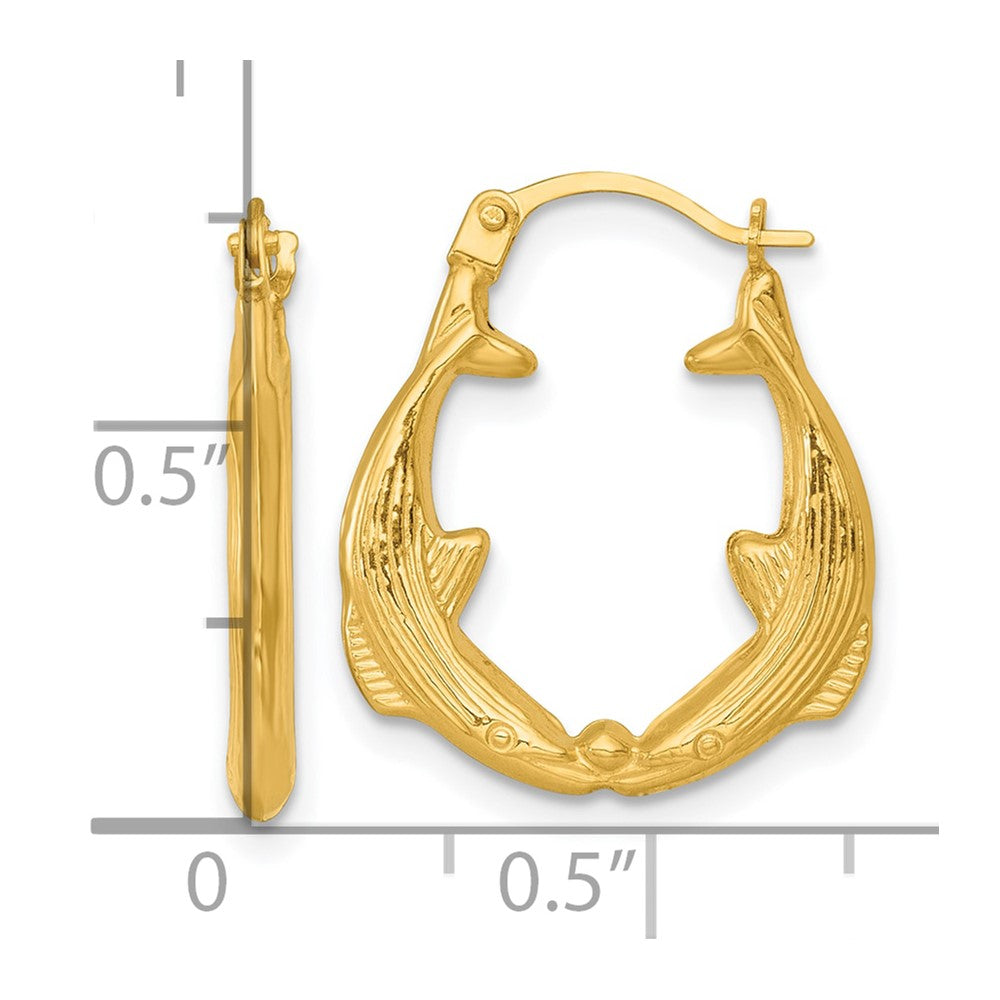 14k Polished Two Whales Hollow Hoop Earrings