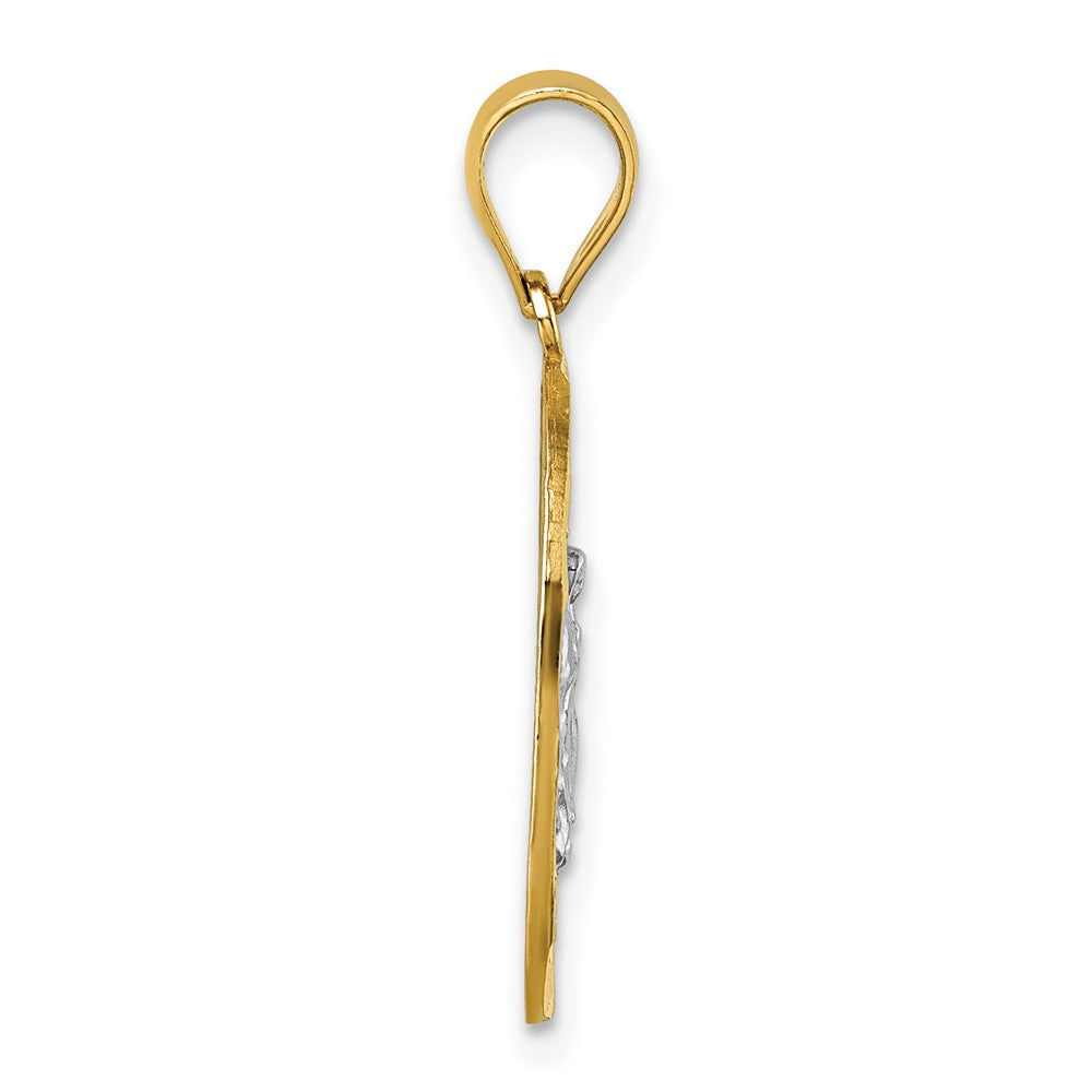14k Polished with Rhodium Diamond-cut Pierced Design Our Lady of Guadalupe Pendant