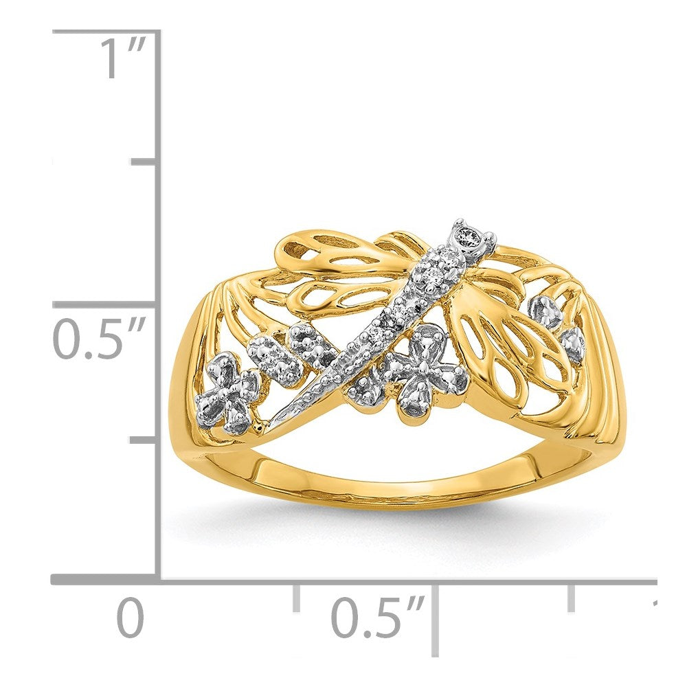 14k Rhodium Diamond Dragonfly Ring