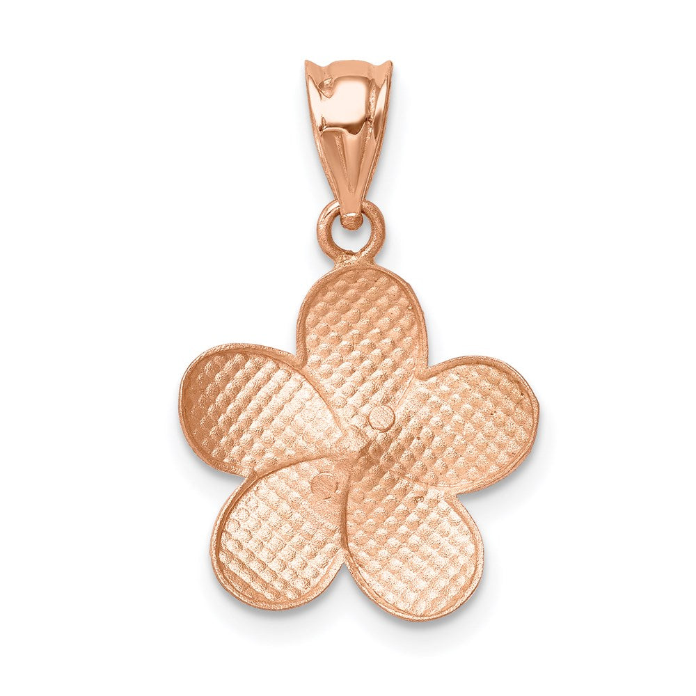 14K Rose Brushed Diamond-cut Plumeria Pendant