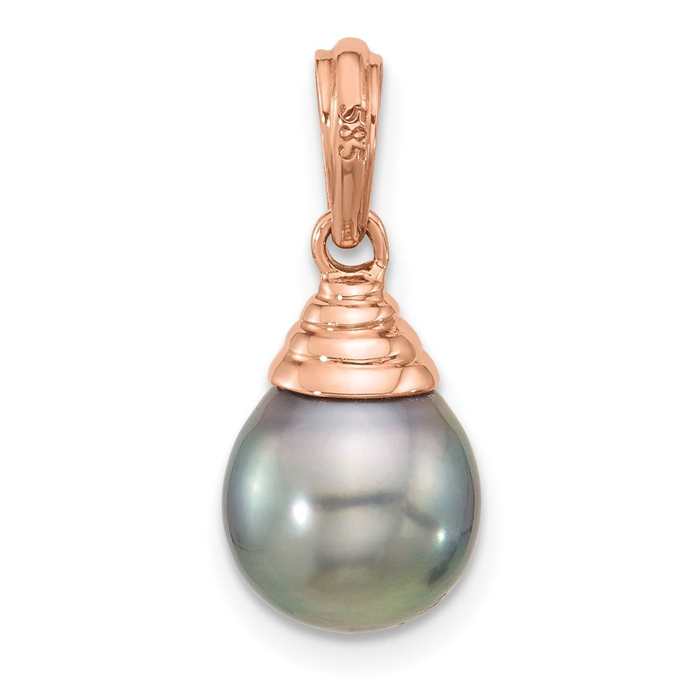 14k Rose Gold 9- Black Teardrop Tahitian Saltwater Cultured Pearl Pendant