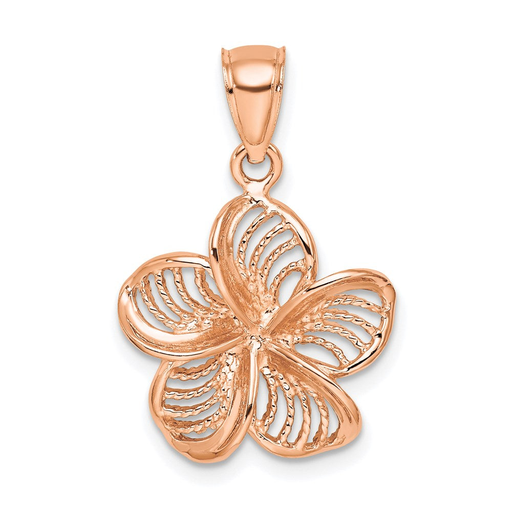 14k Rose Gold Beaded and Polished Plumeria Flower Charm