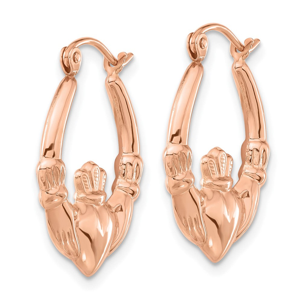 14k Rose Gold Polished Claddagh Hoop Earrings