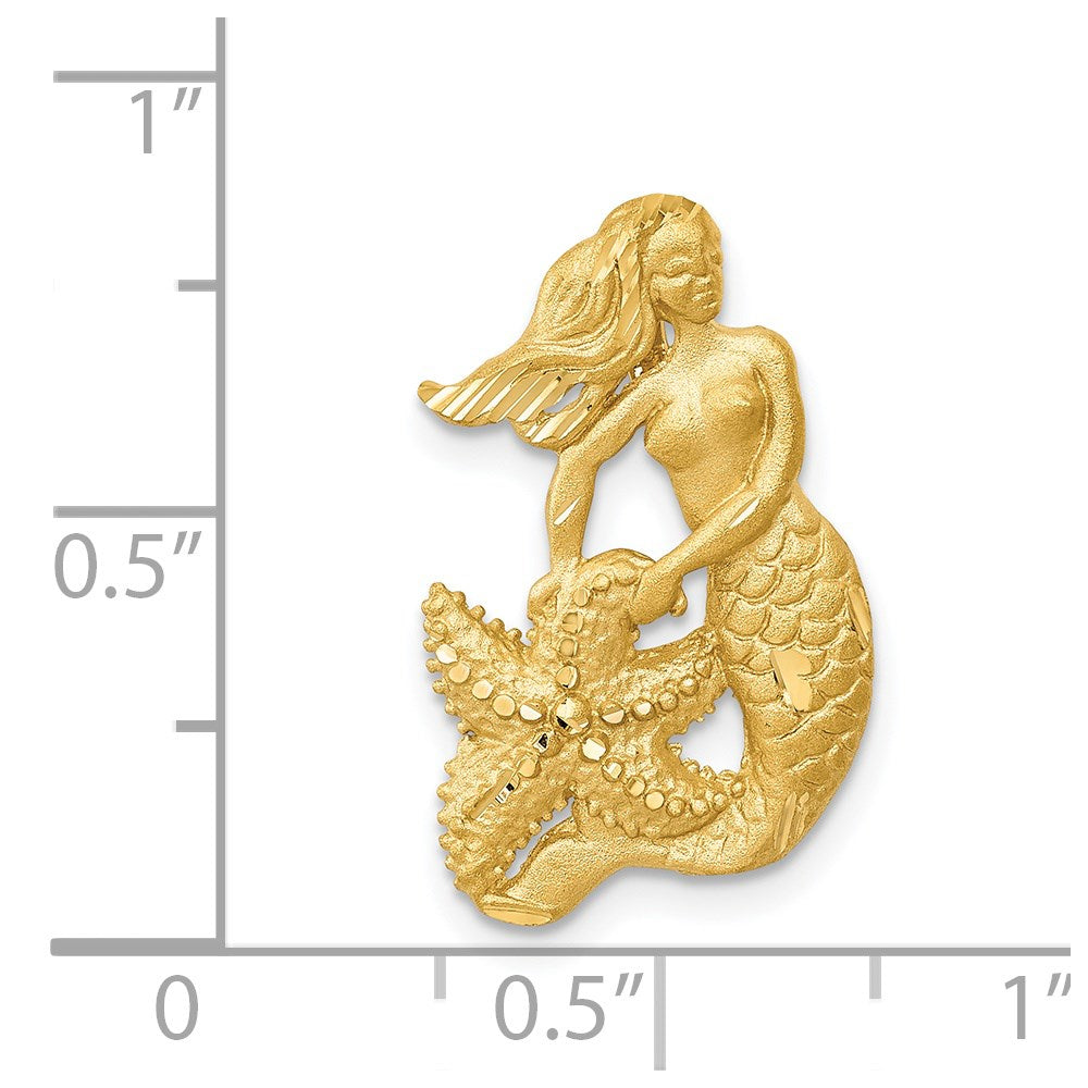 14k Satin Diamond-cut Open-Backed Mermaid Pendant