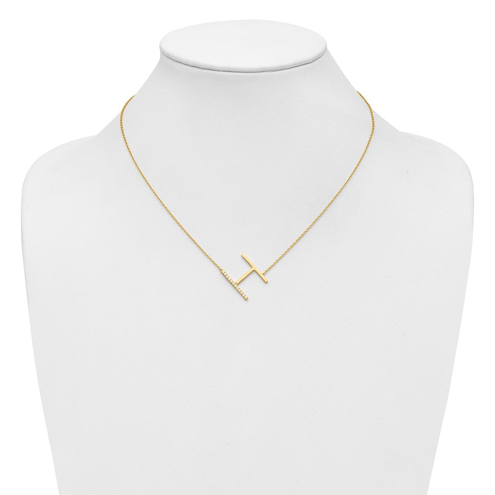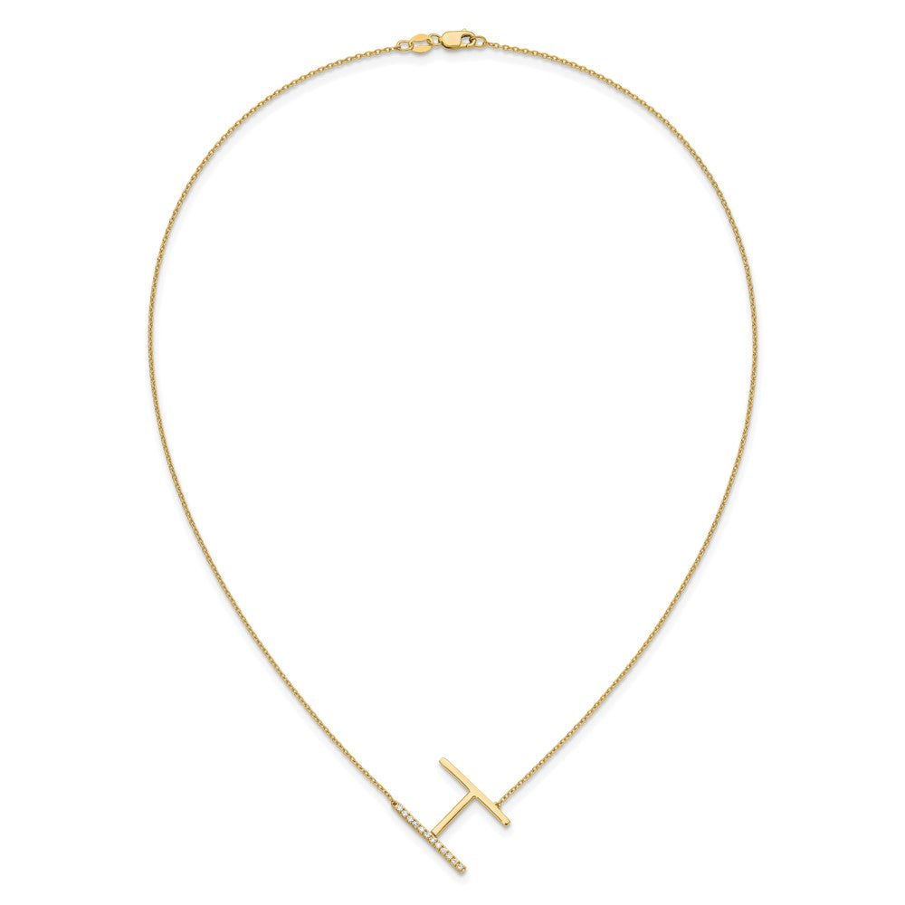 14K Sideways Diamond Initial H Necklace