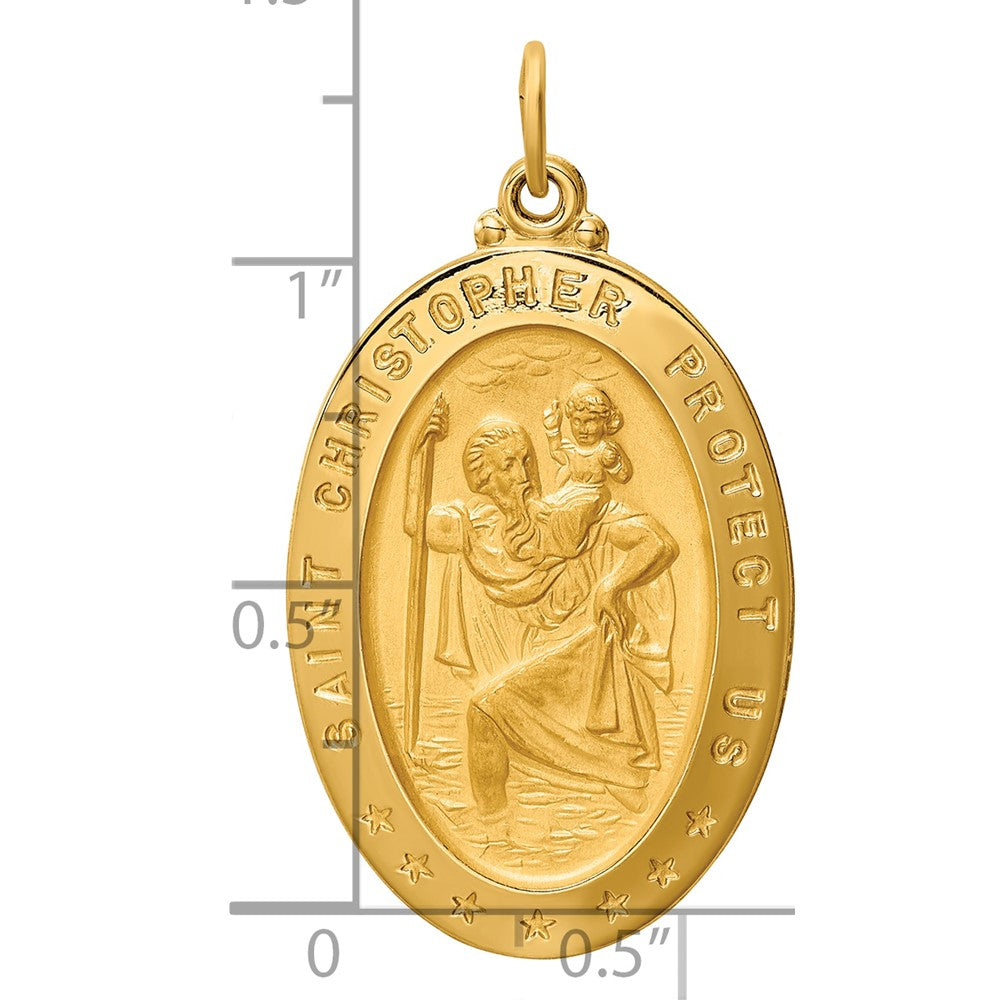 14k Solid Polished/Satin Large Oval St. Christopher Medal