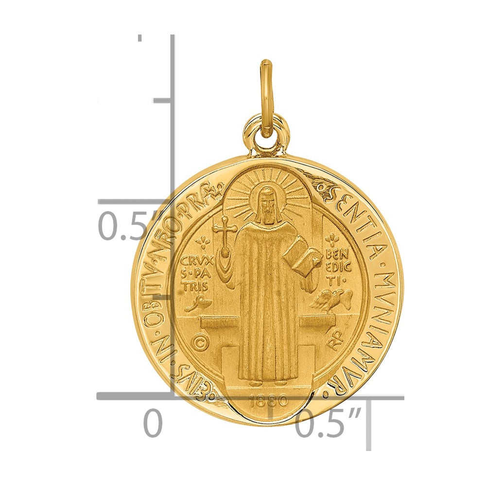 14k Solid Polished/Satin Round Reversible St. Benedict Medal