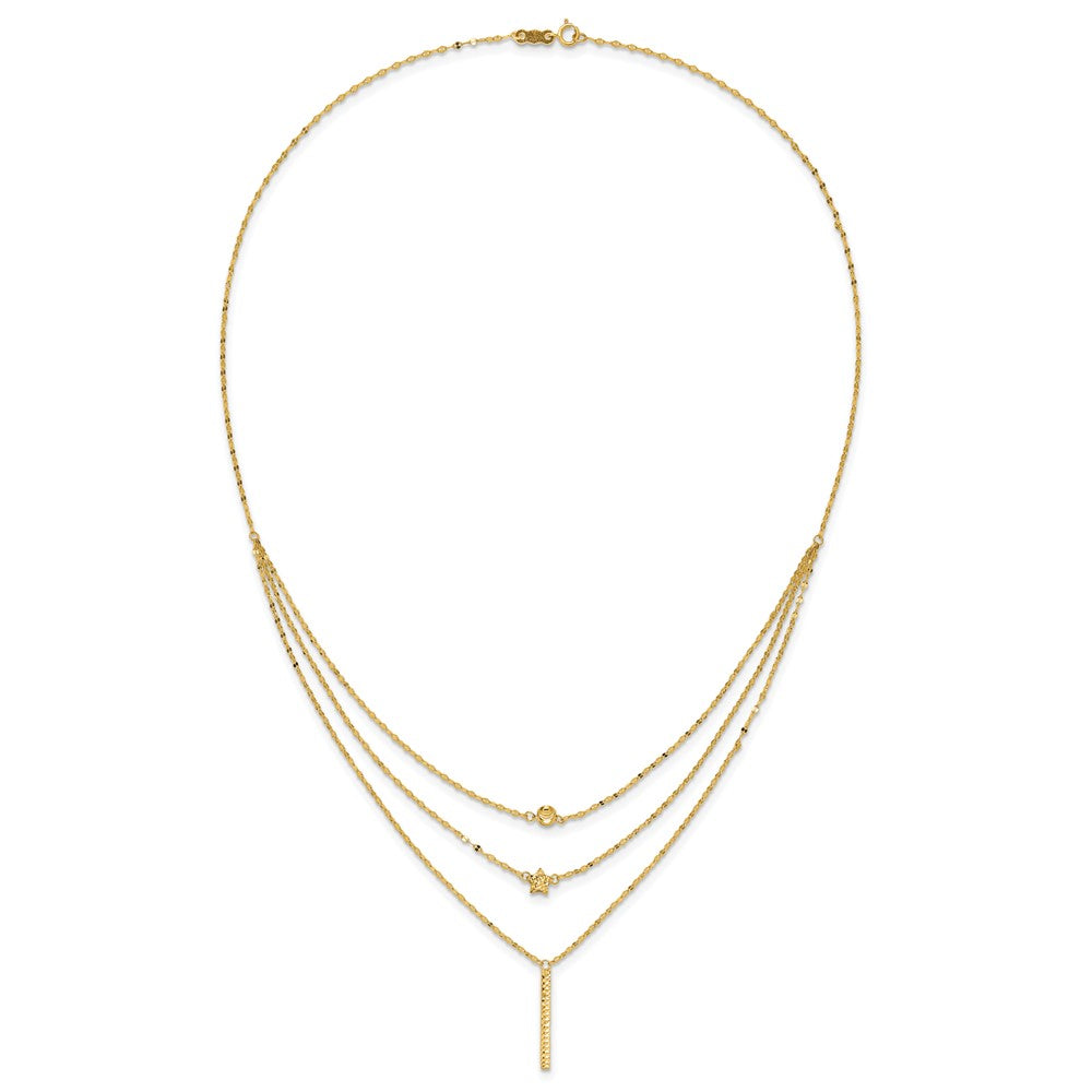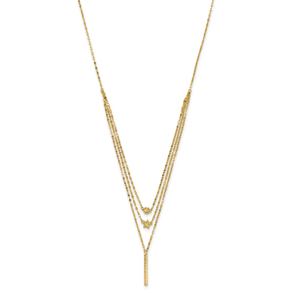 14K Three Strand Diamond-cut Bead/Star/Bar Necklace