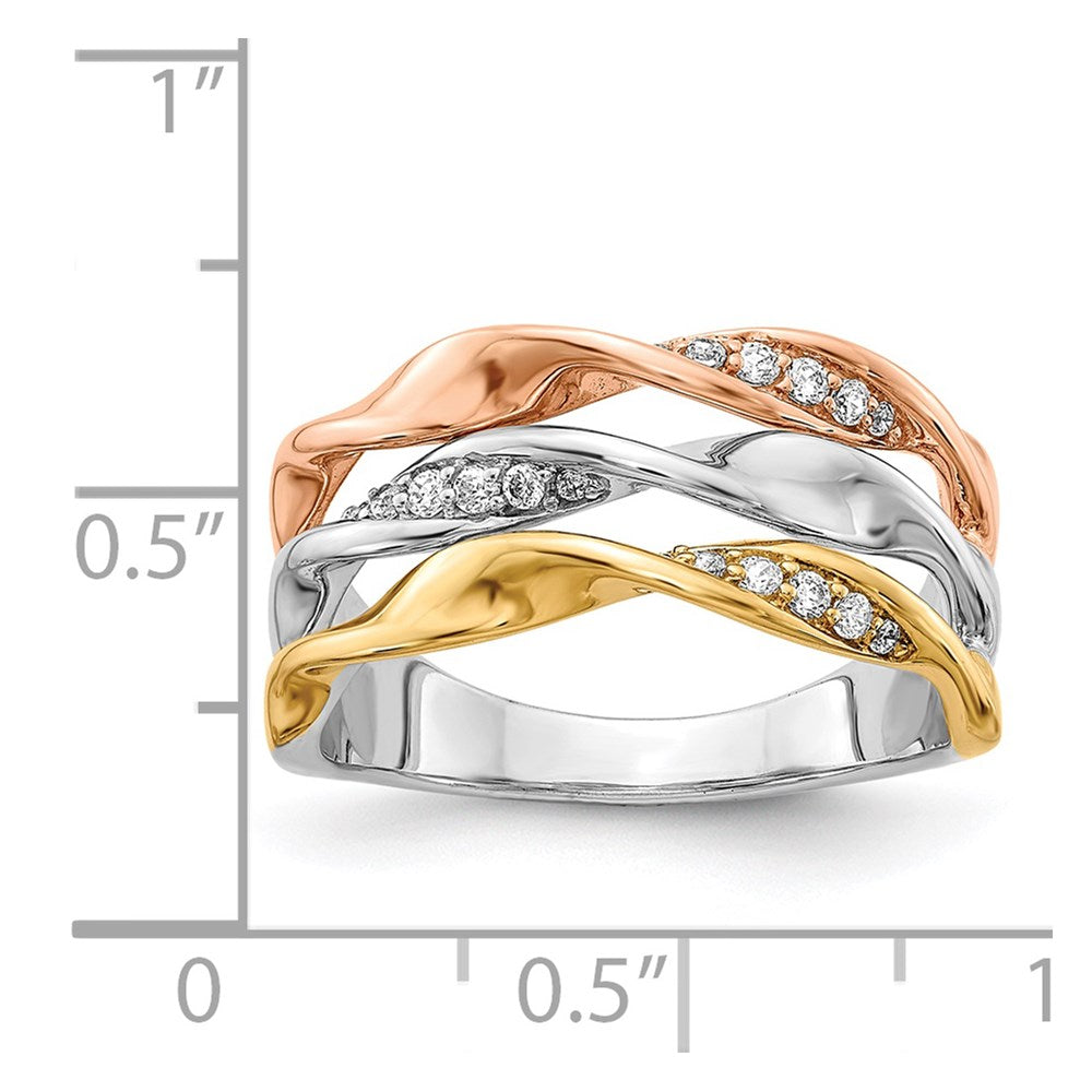 14k Tri-color Diamond Fancy Triple Twist Ring