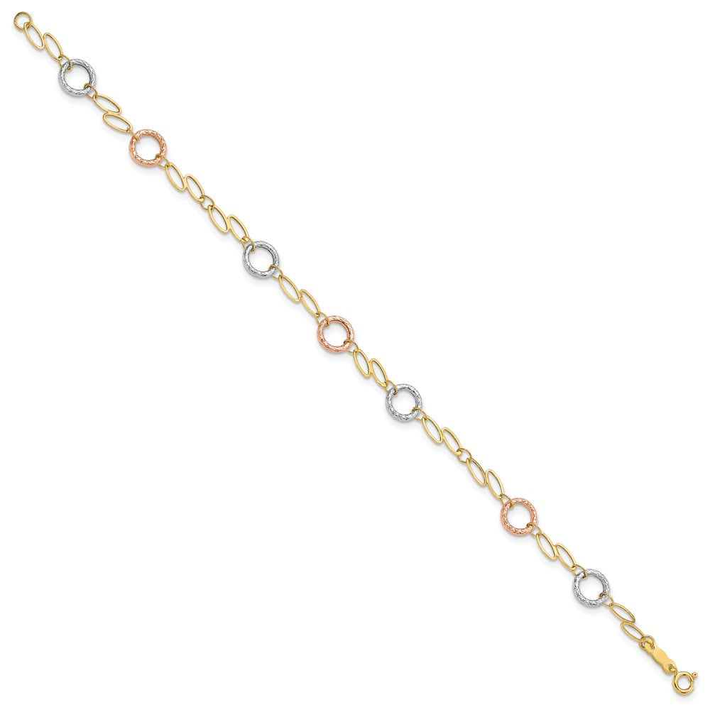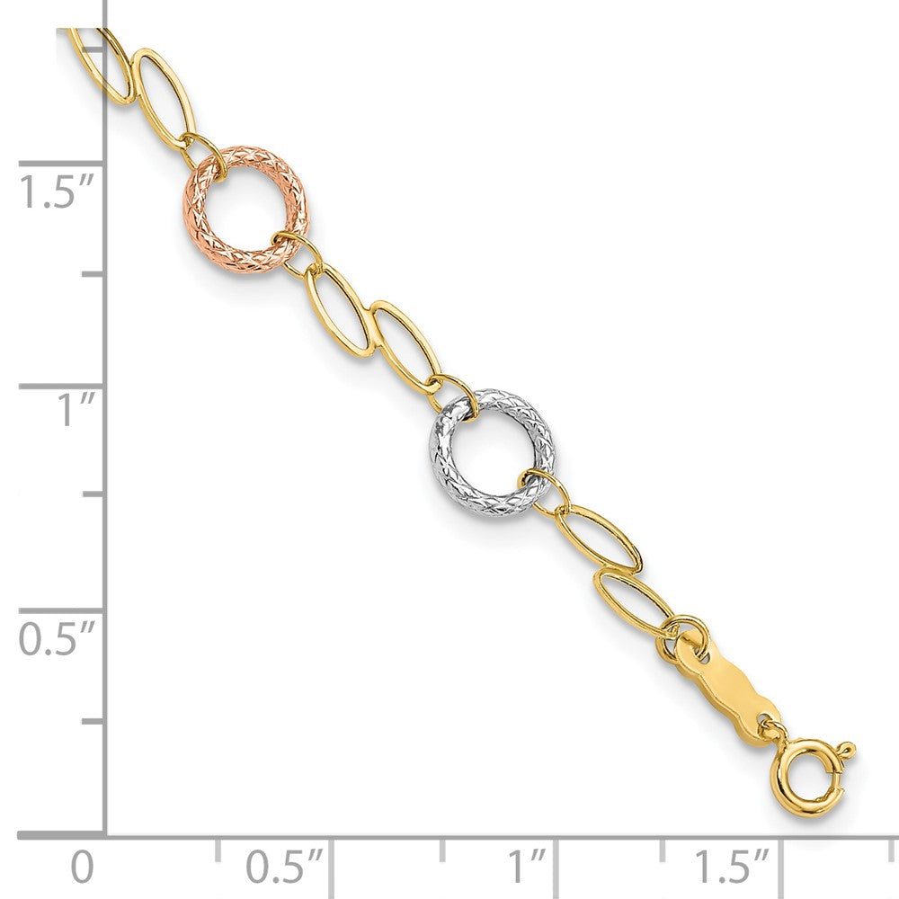 14k Tri-color Polished and Textured Round Circles and Ovals 7. Bracelet