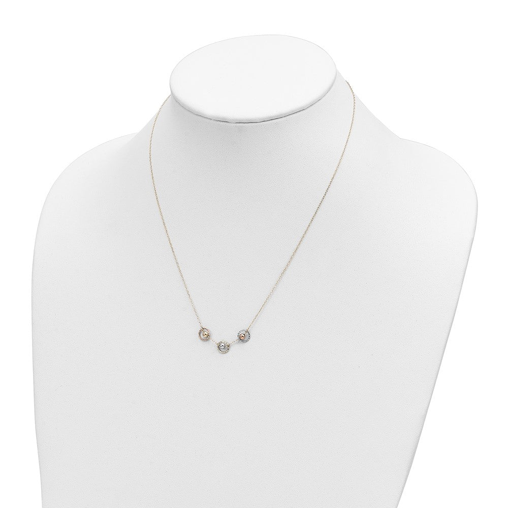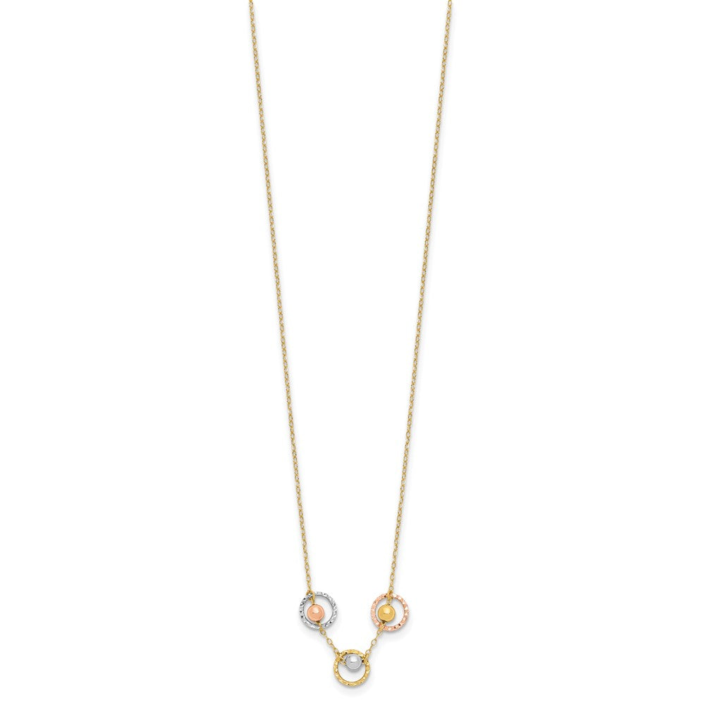 14K Tri-color Polished Beads in Three Diamond-cut Circles Necklace