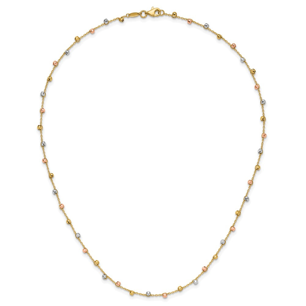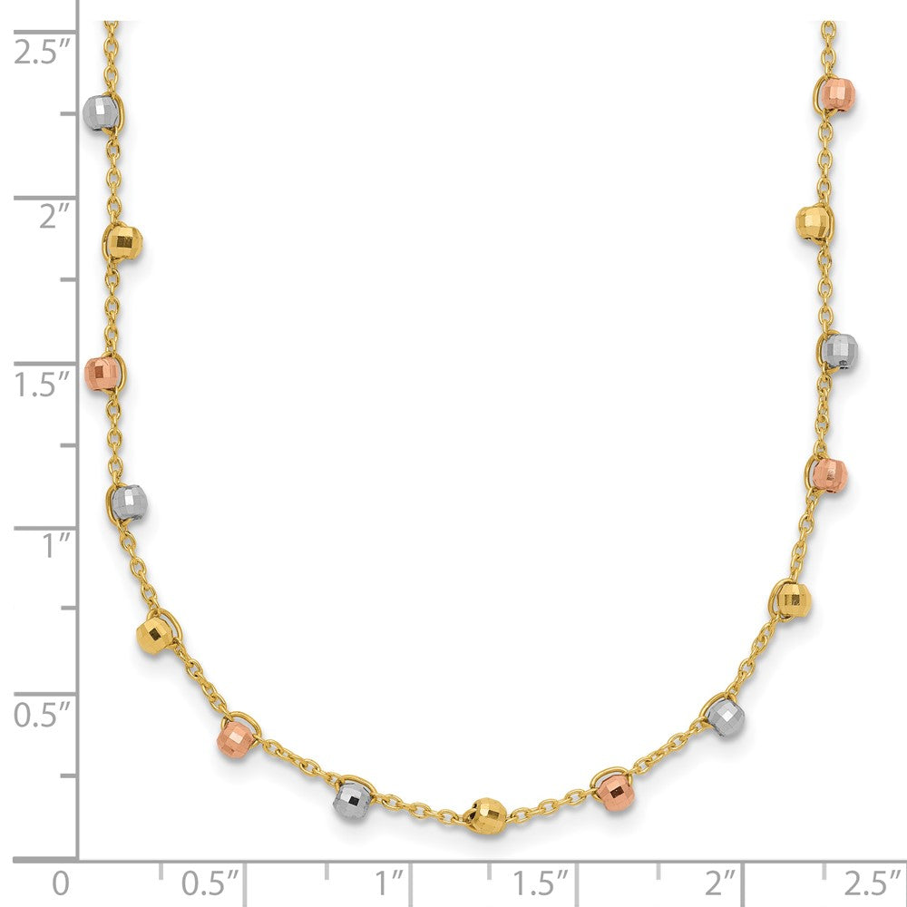 14K Tri-color Polished Diamond-cut Fancy Beaded Necklace