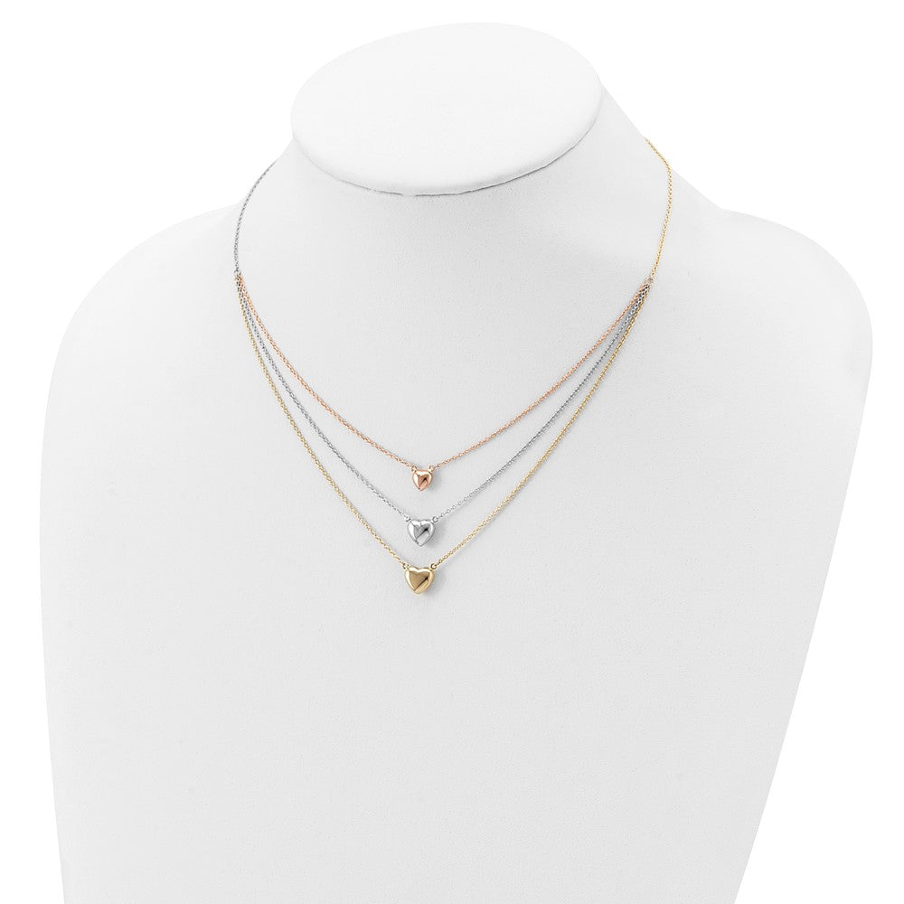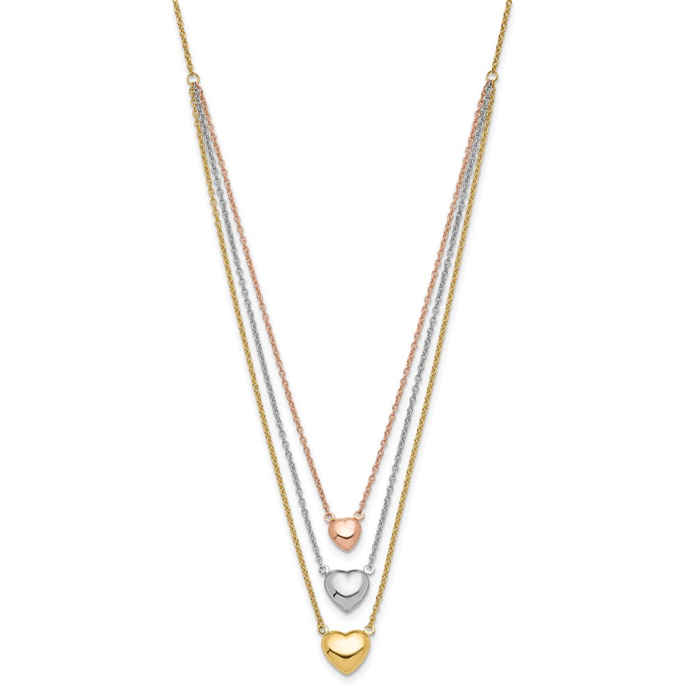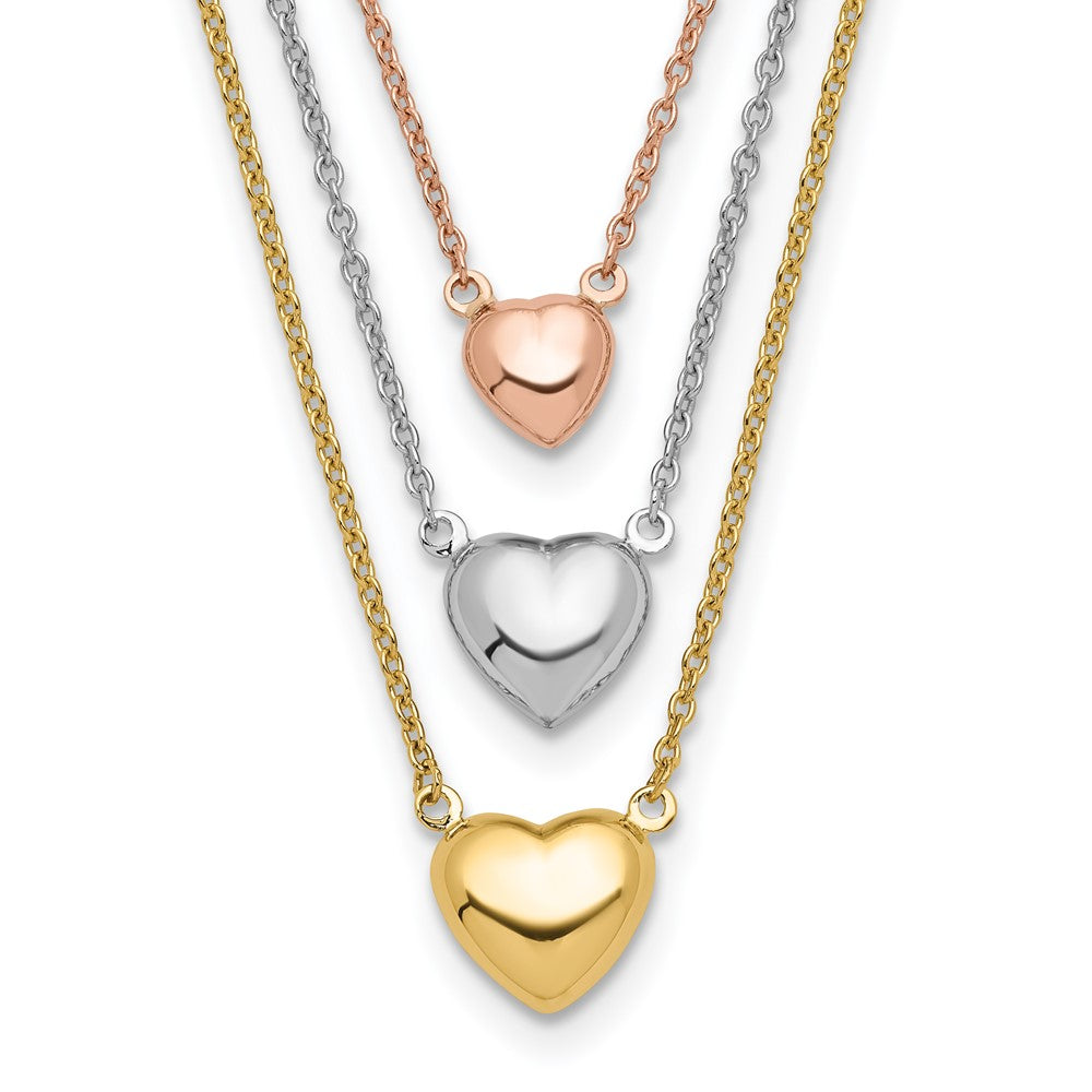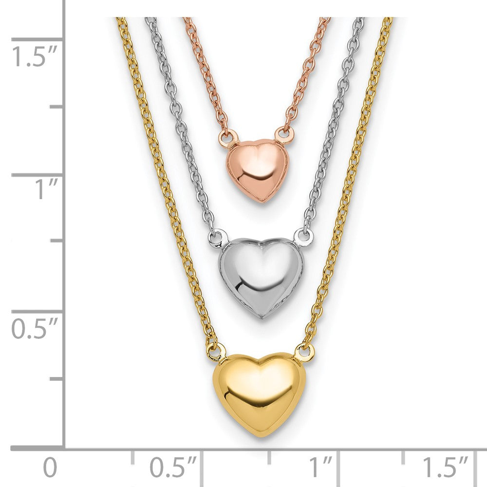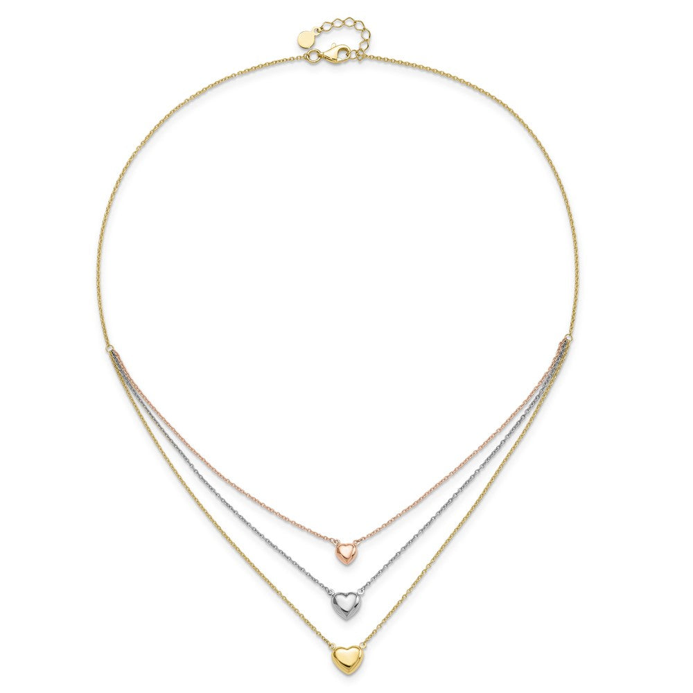 14K Tri-color Three Hearts Layered Necklace Plus Extender