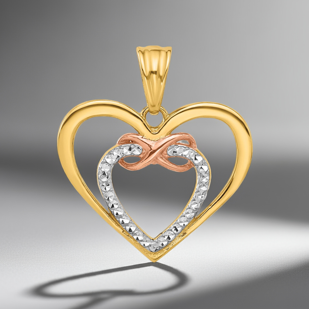 14K Two-tone and White Rhodium Diamond-cut Infinity Hearts Pendant