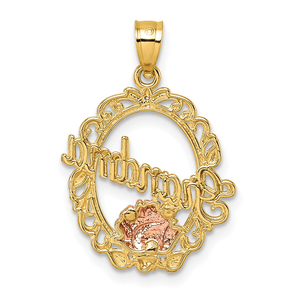 14k Two-tone and White Rhodium Polished GRANDMA Rose Oval Pendant