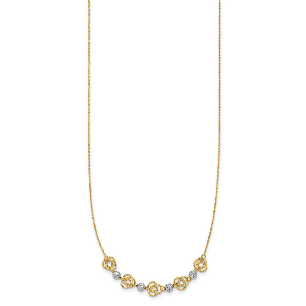 14k Two-tone Diamond-cut Beads and Love Knots Necklace