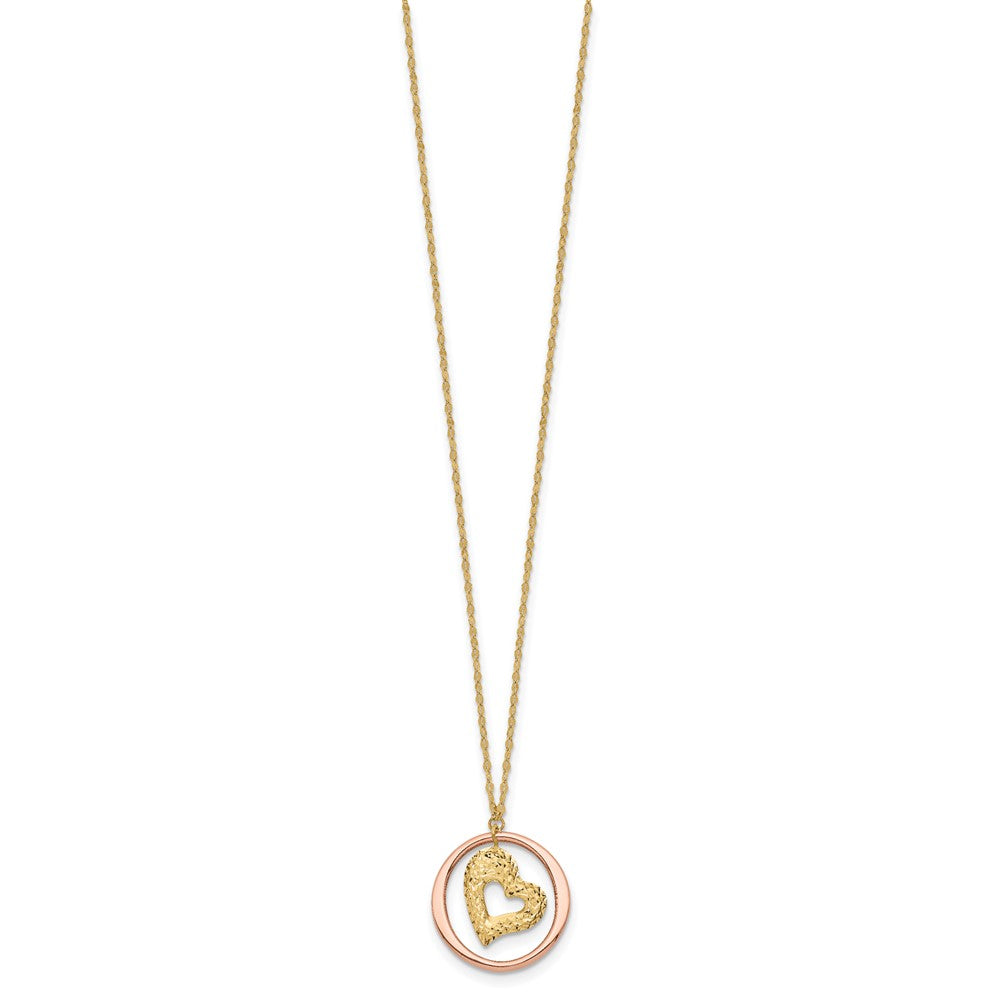 14K Two-tone Fancy Diamond-cut Heart in Open Circle Pendant Necklace
