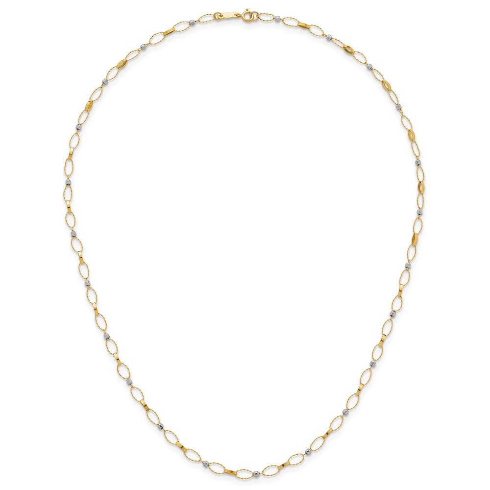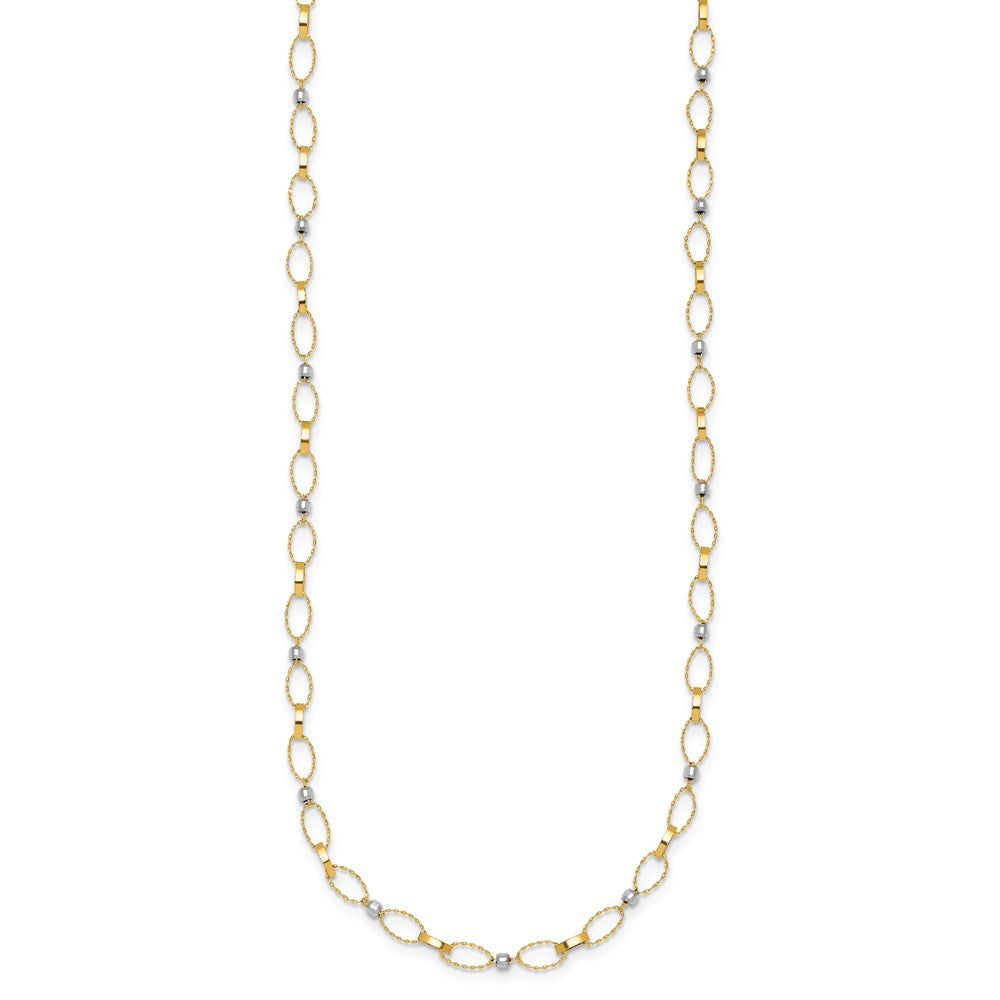 14k Two-tone Polished and Twisted Fancy Oval Links and Faceted Beads Necklace