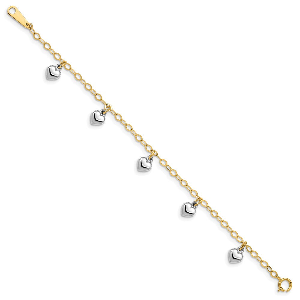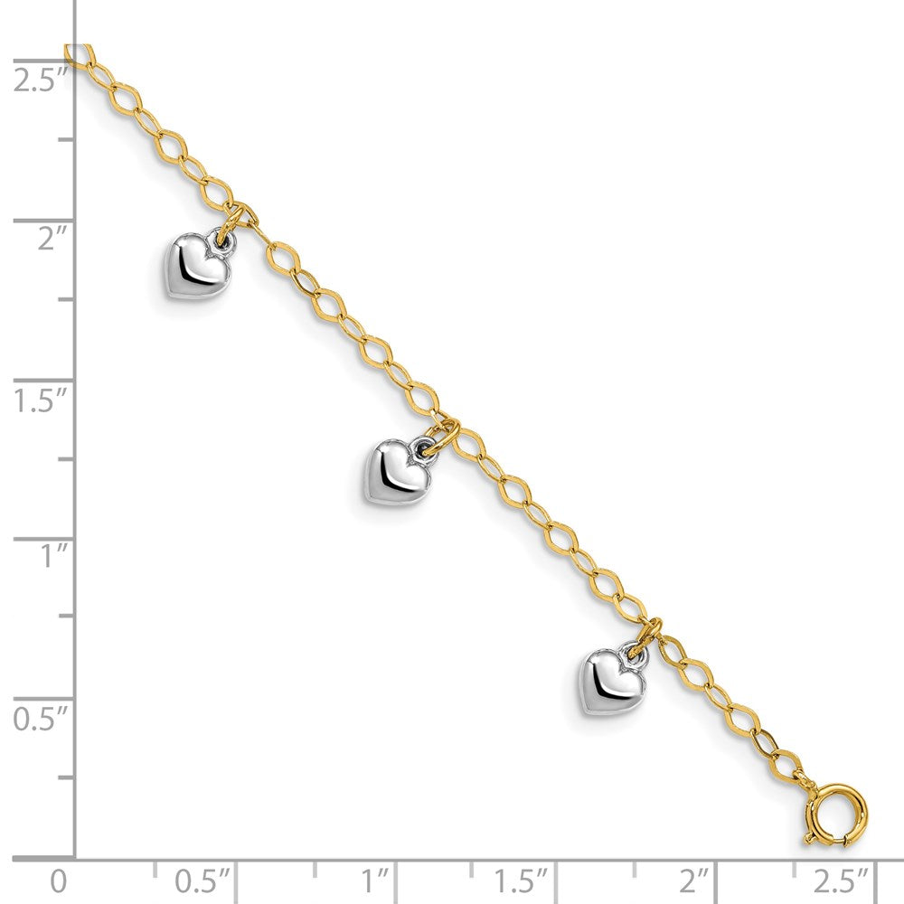14k Two-tone Polished Dangle Heart Baby Bracelet
