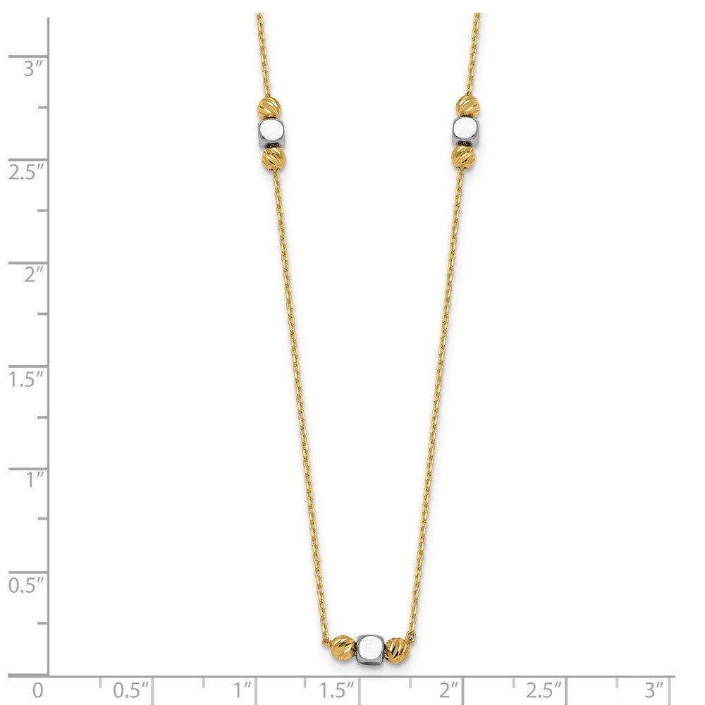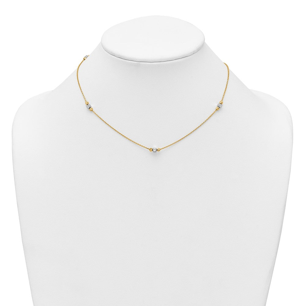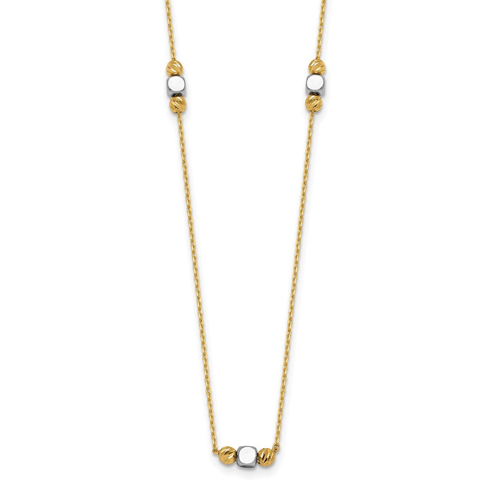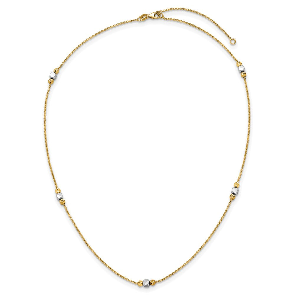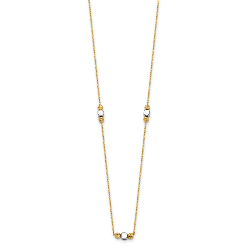 14K Two-Tone Polished Diamond-cut and Square Bead 5-Station Necklace Plus Extender