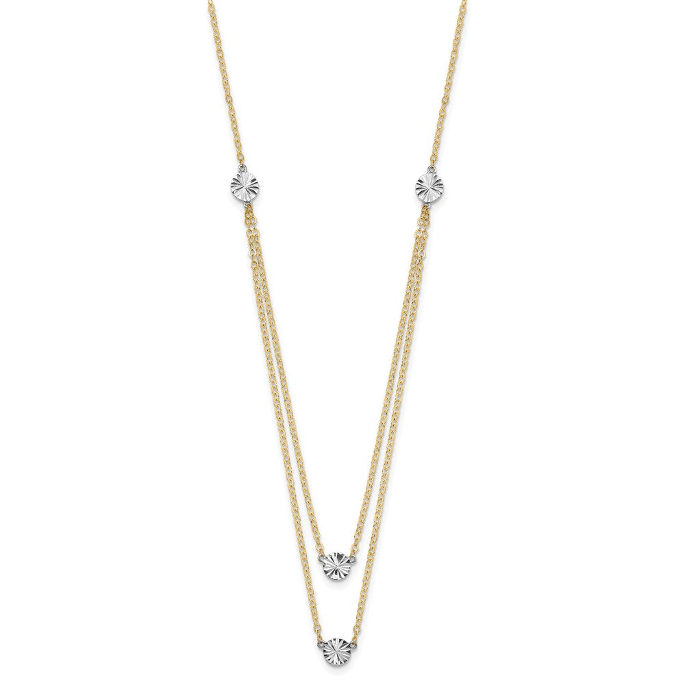 14K Two-tone Polished Diamond-cut Discs Double Layer Necklace
