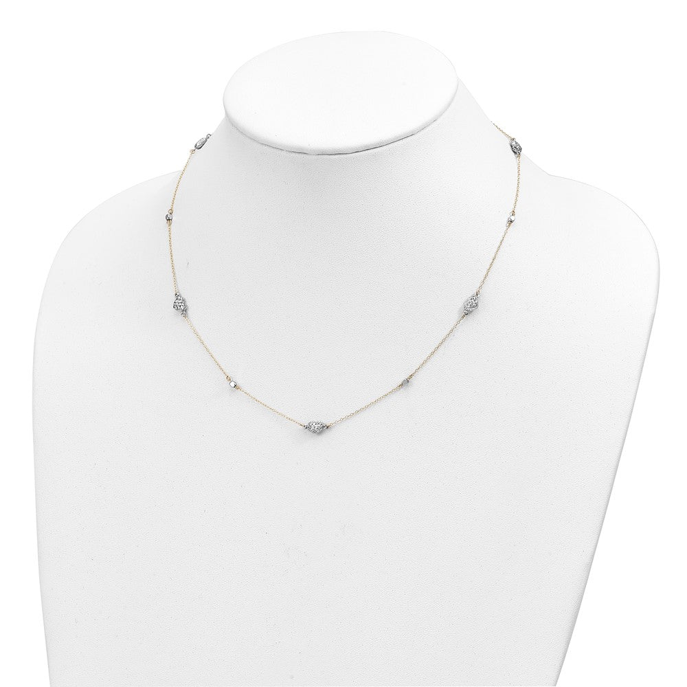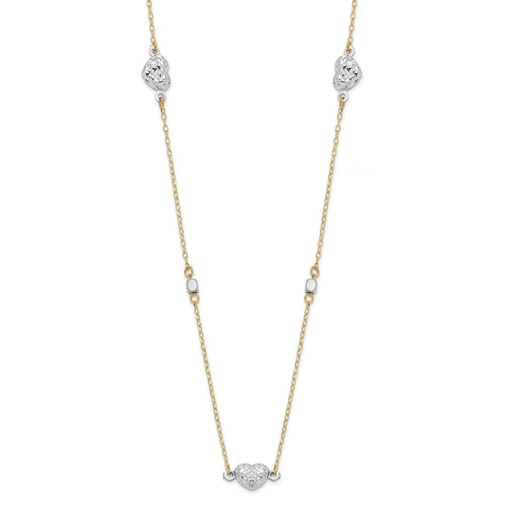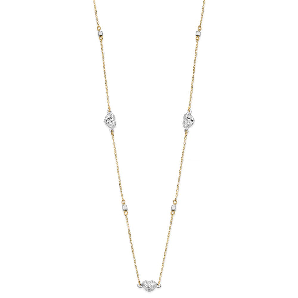14K Two Tone Polished Diamond-cut Puffed Hearts and Beads Necklace