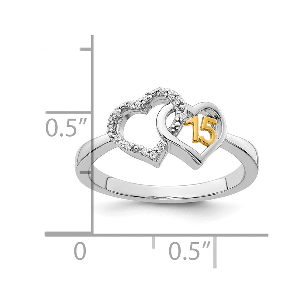 14K Two-tone Polished Diamond Quinceanera Double Heart Ring