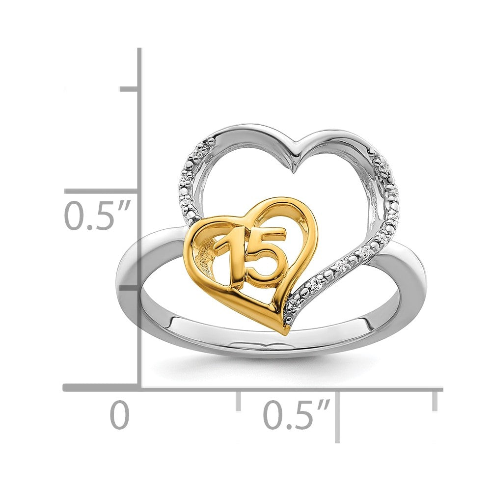 14K Two-tone Polished Diamond Quinceanera Heart Ring